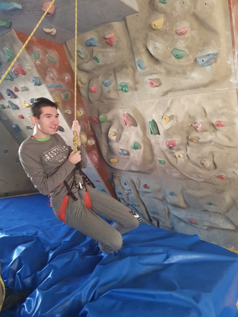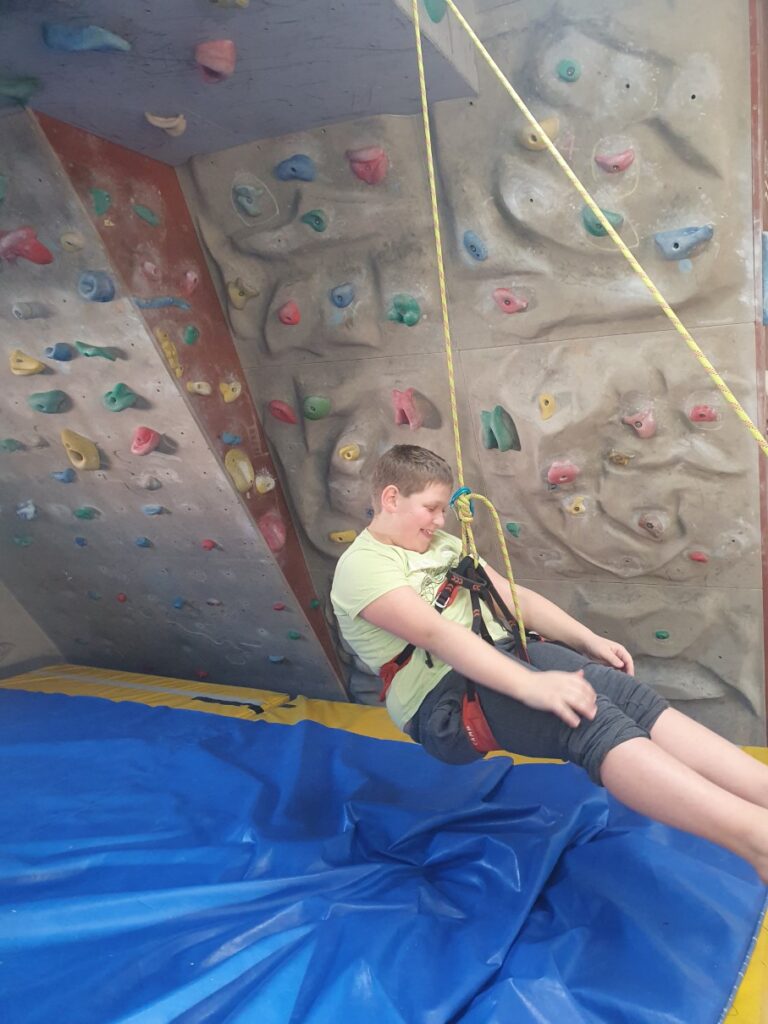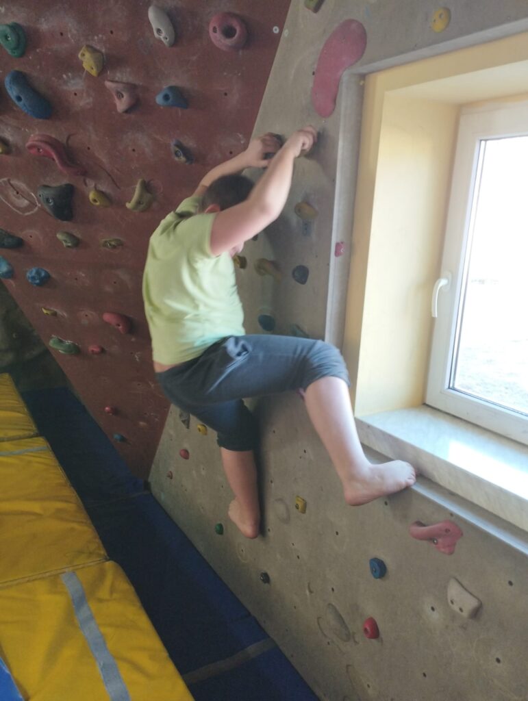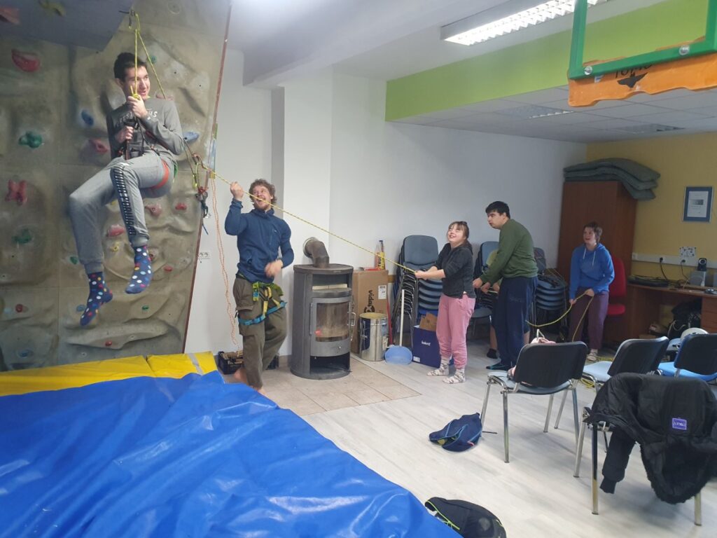 V gorniškem učnem centru smo se srečali z Gašperjem. Predstavil nam je opremo, ki jo uporabljajo alpinisti. Vsem se nam je zdela zelo zanimiva. Imeli smo celo priložnost obleči plezalni pas in se zavezati na plezalno vrv. Gašper nas je dvignil, tako da smo obviseli na pasu in se veselo gugali. Preizkusili smo se tudi v plezanju po oprimkih in olajšano ugotovili, da je blazina pod plezalno steno tako mehka, da se lahko nanjo tudi vržemo. Ob koncu smo s pomočjo škripca še vsi skupaj dvignili sošolca in s tem zaključili dejavnosti v gorniškem učnem centru. Ostala nam je le še pot do šole, kjer so nas pričakali starši.