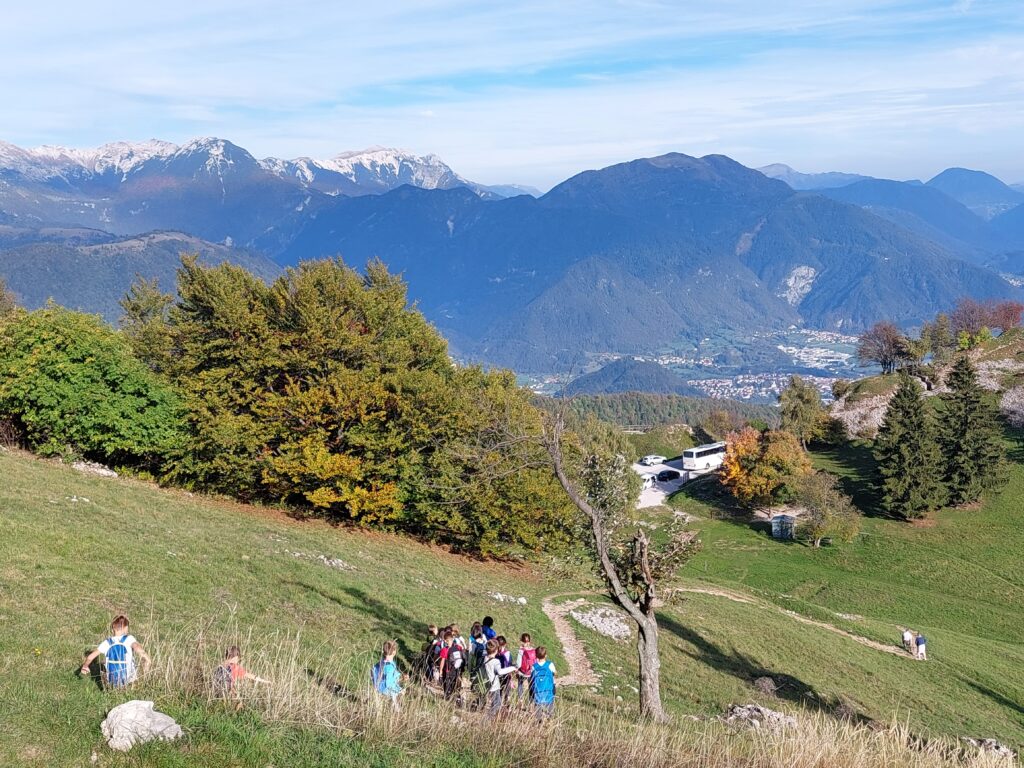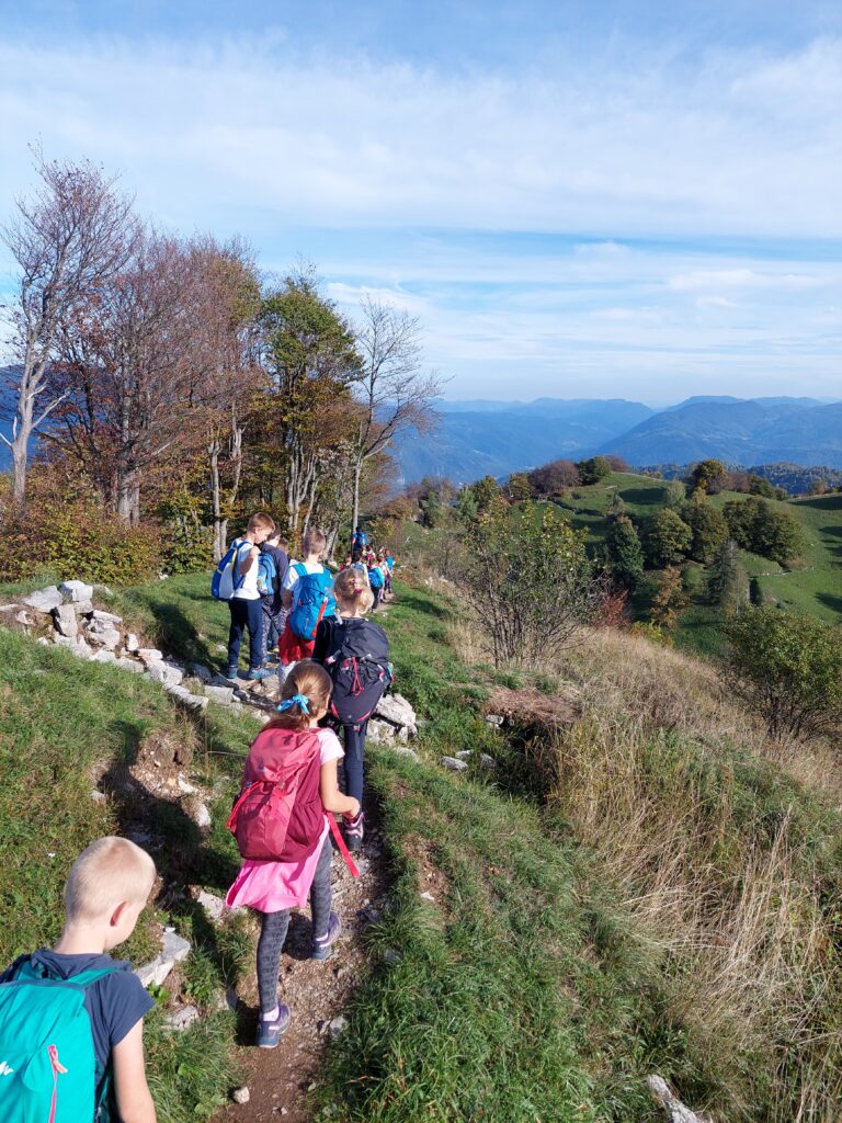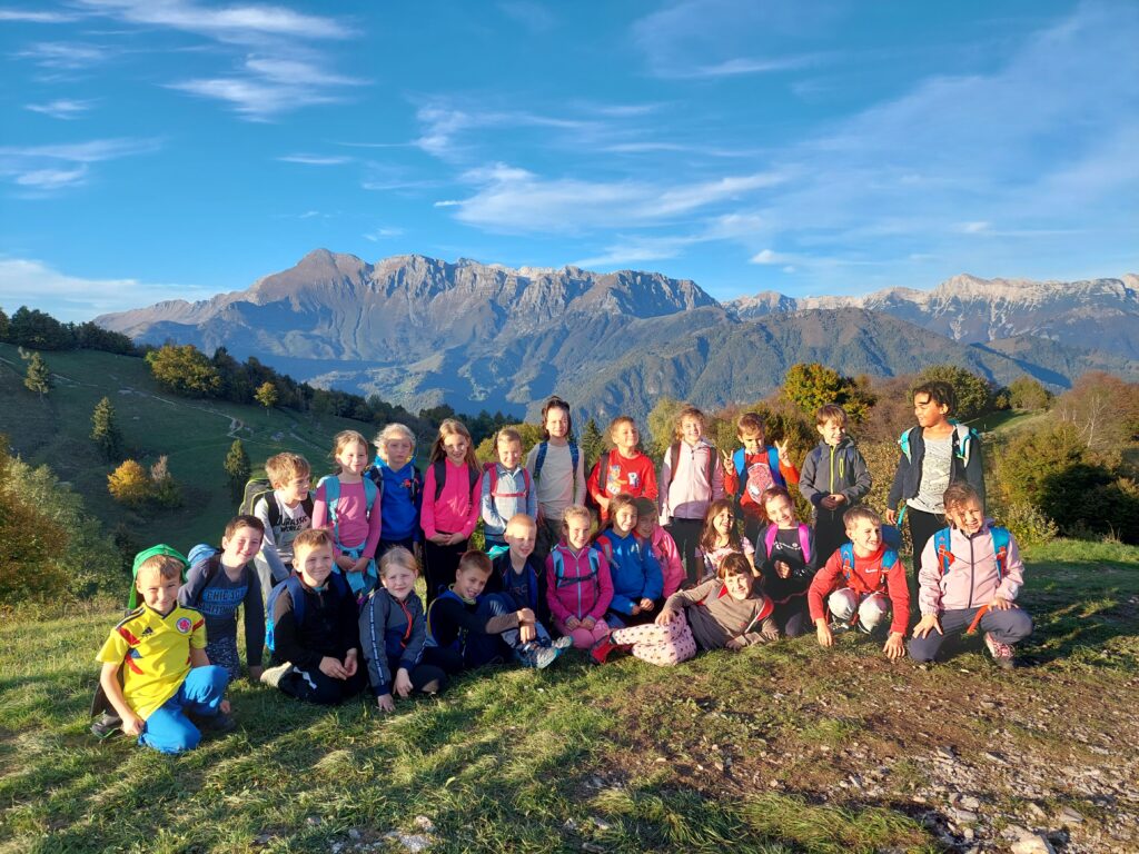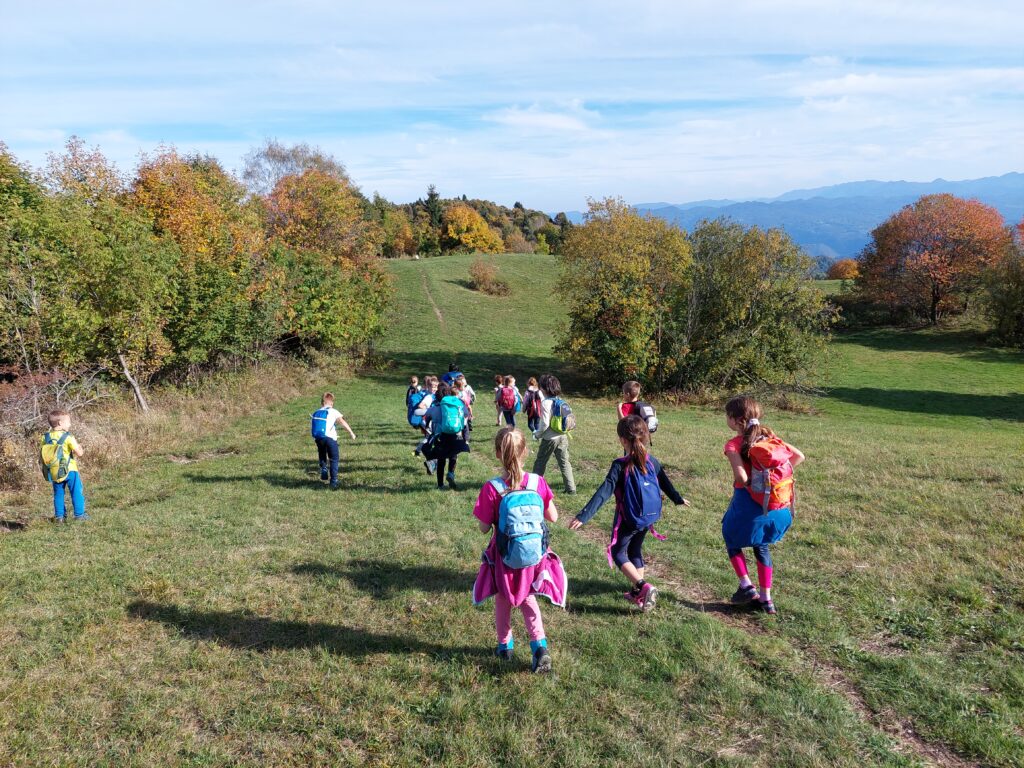 Na sončen četrtek, 6. 10. 2022, smo se z mladimi planinci odpravili na pohod po Kolovratu. Imeli smo razgibano pot z vzponi in spusti. Hodili smo po grebenu in doživeli krasen razgled na Italijo in morje, Matajur in Kuk, Krn, Kanin in tolminske hribe. Radovedno smo opazovali tudi tla. Našli smo več gob, gosenico in deževnika. Po slastni malici in vpisovanju podatkov v dnevnik smo šli pogledat v bunkerje. Na razgledni točki smo žigosali planinske dnevnike, nato pa se spustili proti avtobusu. Doživetja dneva so nas grela po poti do Tolmina.