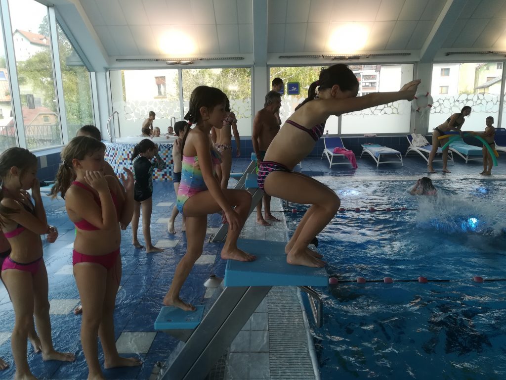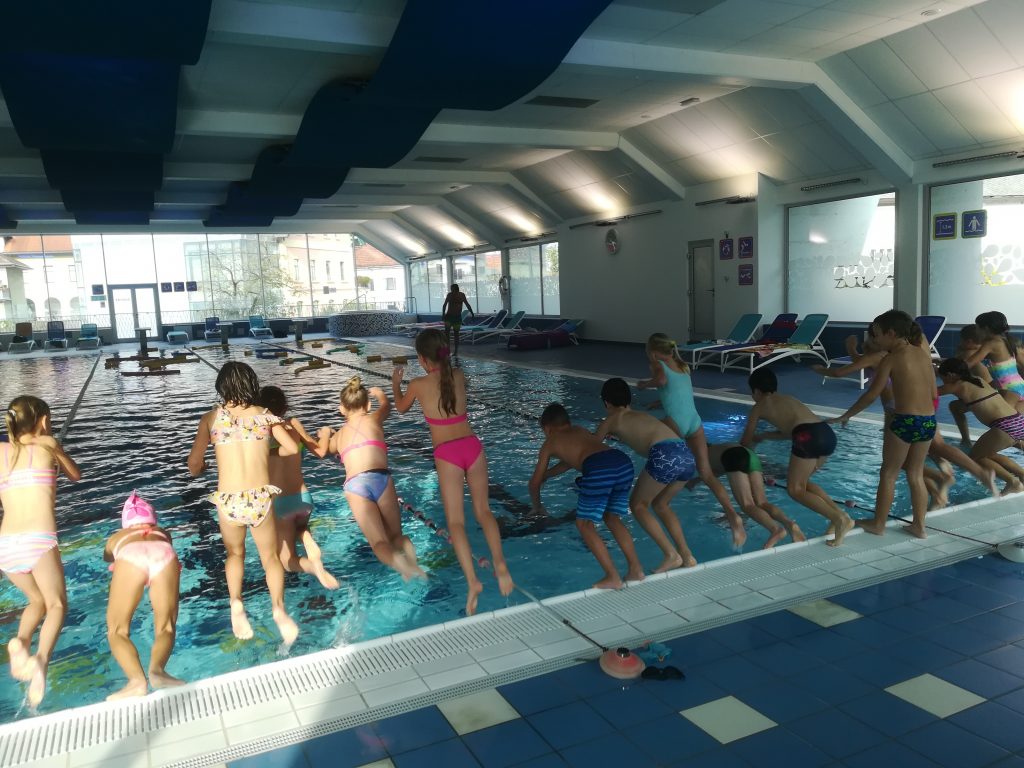 V skupinah so se učili različnih plavalnih tehnik in ostalih plavalnih veščin. Pod vodstvom plavalnih učiteljev Vladija, Saše, Jožeka, Mateja in Špele so pogumno plavali, skakali in se potapljali tudi v globoki vodi.