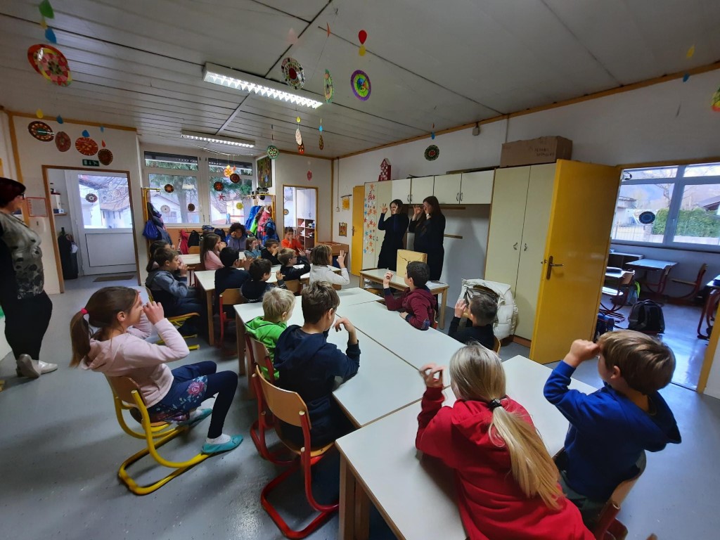 Življenje gluhih in naglušnih oseb se lahko precej razlikuje od življenja tistih, ki imamo normalen sluh, zaradi izzivov, povezanih s komunikacijo, izobraževanjem, delom in družbenim vključevanjem. Vendar pa so te osebe pogosto sposobne razviti edinstvene načine za obvladovanje teh izzivov, hkrati pa ohranjajo bogato in polno življenje. To nam je dokazala tudi gluha Tina, ki smo jo spoznali ta teden. Učence obeh podružnic (Kamno in Volče) je obiskala skupaj z Mojco Komel, obe pa sta zaposleni v Društvu gluhih in naglušnih Severne Primorske.