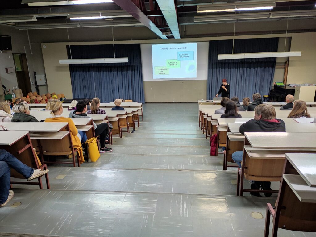 Na šoli smo gostili priznano slovensko strokovnjakinjo s področja branja, dr. Sonjo Pečjak. Zanimivega predavanja z naslovom: Pomoč staršev pri razvoju bralnih zmožnosti otroka v 1. triletju, se je udeležilo več kot 70 udeležencev. V okviru bralnega projekta v prvem triletju dajemo med drugim velik poudarek tudi izobraževanju staršev, saj je njihova vloga pri začetnem urjenju branja izredno pomembna.