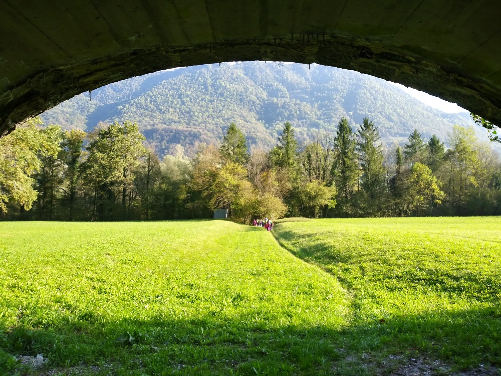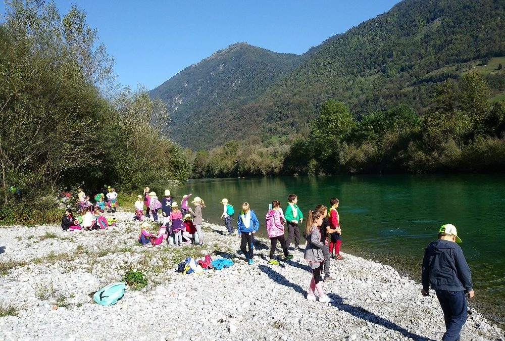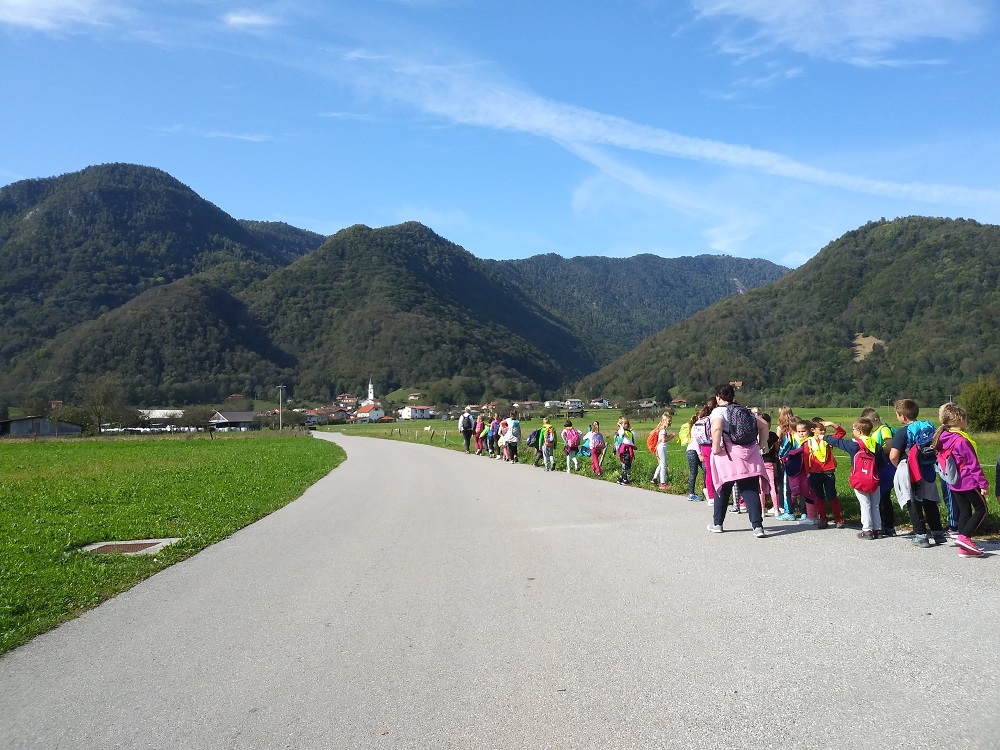 Zbrali smo se v volčanski šoli, nato pa krenili čez vas do Gabrc in naprej do Soče. Ob krasnem razgledu smo pomalicali in pojedli skoraj vse priboljške, ki so jih skrile mame v nahrbtnike.