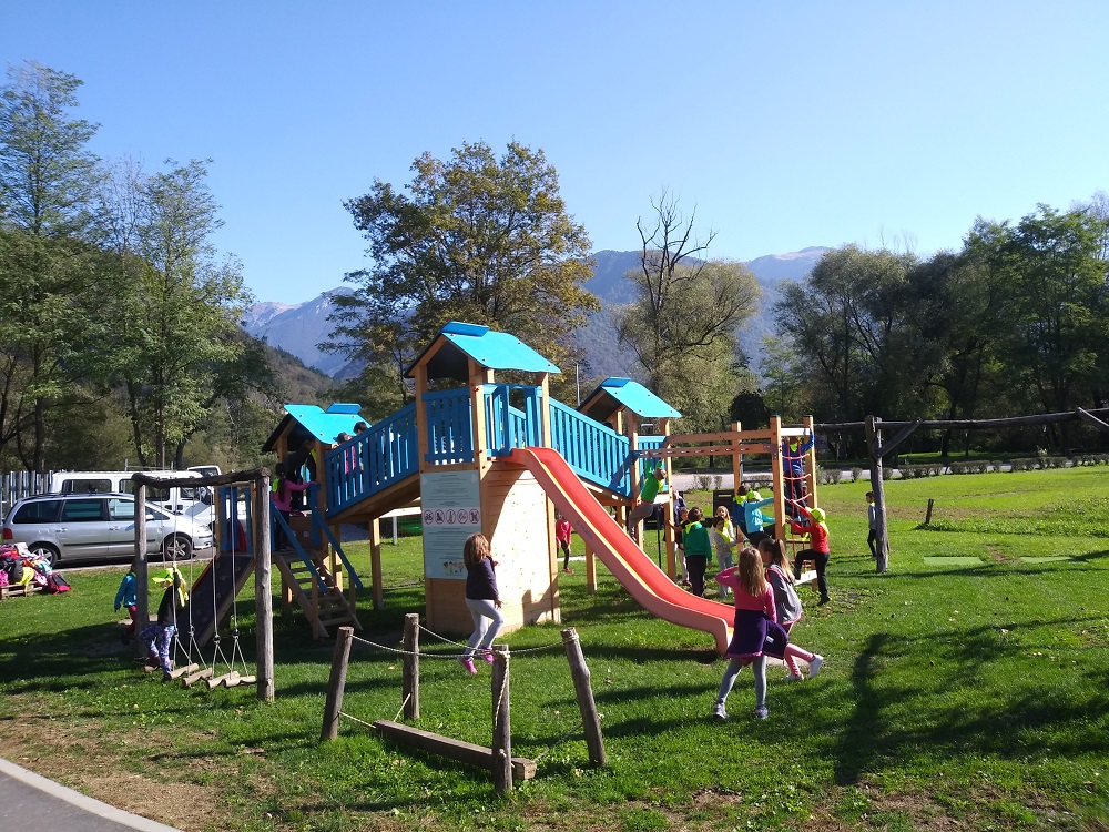 Pot nas je vodila naprej ob Soči, mimo ogromnih kupov peska na Separaciji, do Labrc. Tam smo se ponovno ustavili, da so lahko učenci dokončno izpraznili nahrbtnike in se poigrali na igralih.