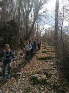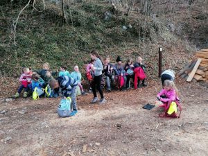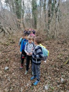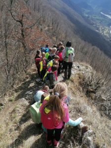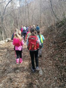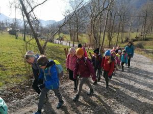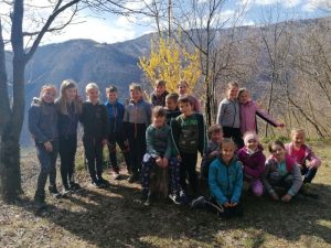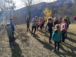 Na prvi pomladanski šolski dan smo se odpravili v naravo. Izkoristili smo lepo vreme in odšli na pohod. Z Volarij smo zagrizli v klanec in kmalu prišli na pohodniško pot Alpe Adria, ki povezuje najvišji vrh Avstrije in morje. Pot smo nadaljevali navzgor in si med vzponom privoščili daljši počitek z malico, kjer smo se igrali različne igre lovljenja, banse ter iskali jajčka, ki nam jih je baje skril Velikonočni zajček. Po počitku pa smo imeli le še kratek del poti do razgledne točke, kjer se nam je odprl razgled na dolino Soče in Tolminsko kotlino. V dolino smo se spustili po lepi stari poti do vasi Selišče, od kjer nismo imeli več daleč do šole.