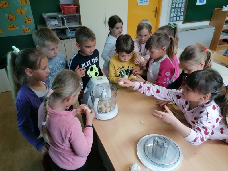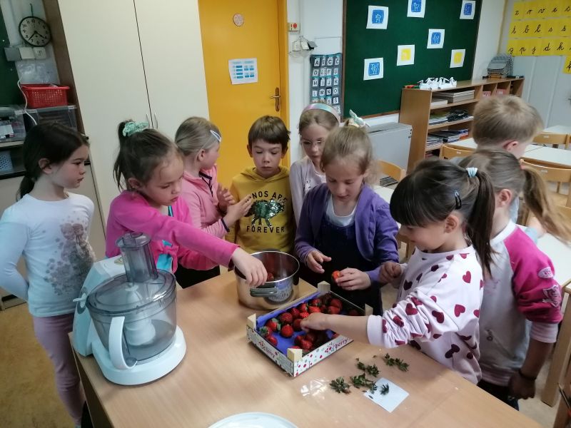 Najlepše je bilo na dan, ko so učenci 1. in 2. razreda pripravili zdravo presenečenje za učence 3. in 4. razreda. Po receptu, ki smo ga dobili med starim gradivom, so pripravili bananin in jagodni mlečni napitek. Da je presenečenje uspelo, so se morali še posebej potruditi, saj so morali izvesti dejavnost v popolni tišini, da se niso izdali kaj pripravljajo. Seveda je presenečenje popolnoma uspelo, učenci pa so bili zelo veseli zdravega napitka.