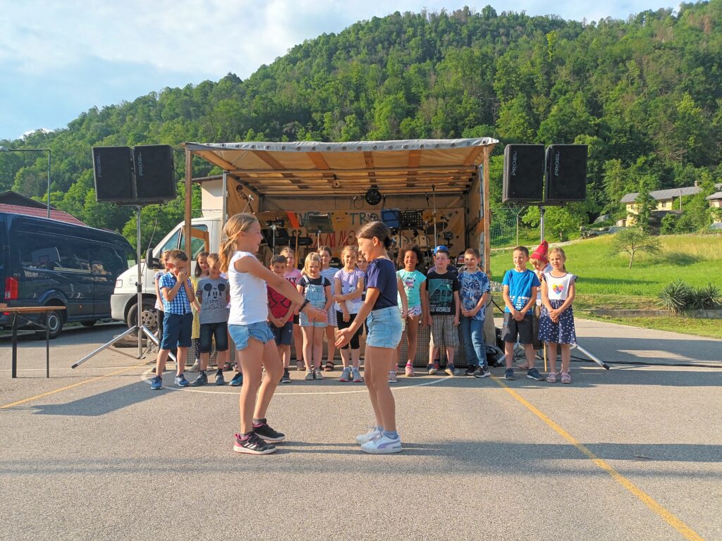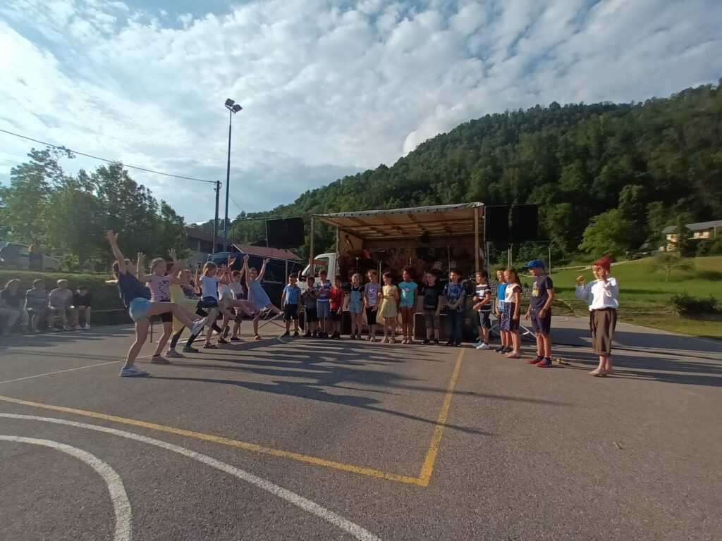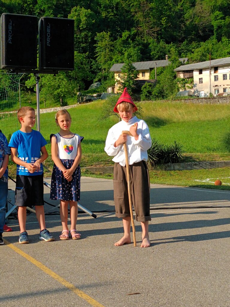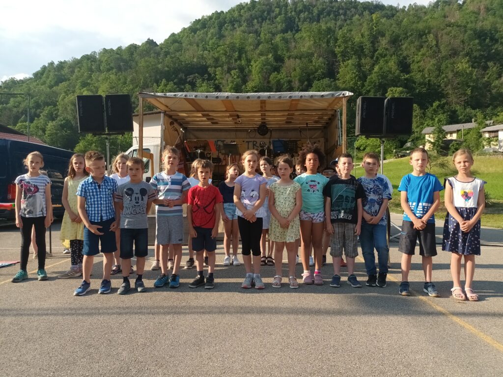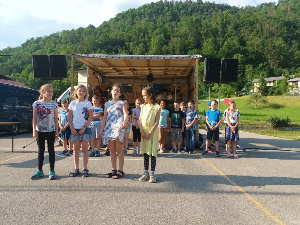 Prvo soboto v juniju smo učenci PŠ Kamno sodelovali s kratkim programom na vaškem prazniku Sveta trojica na Kamnem. Letos nas je doletela čast, da smo s svojim nastopom otvorili samo kulturno dogajanje, ki se je prepletalo z glasbo in razstavo likovnih del različnih umetnikov. Gledalcem smo zapeli, zaigrali in zaplesali različne pesmi, deklamacije in banse. Obiskal pa nas je tudi Kekec, ki smo ga poskušali navdušiti, da je šola res nekaj odličnega in da skozi šolsko leto uživamo in se učimo različne stvari. Seveda smo si na koncu zaslužili bučen aplavz in za nagrado tudi vsak nekaj sladkega – palačinko s čokolado.