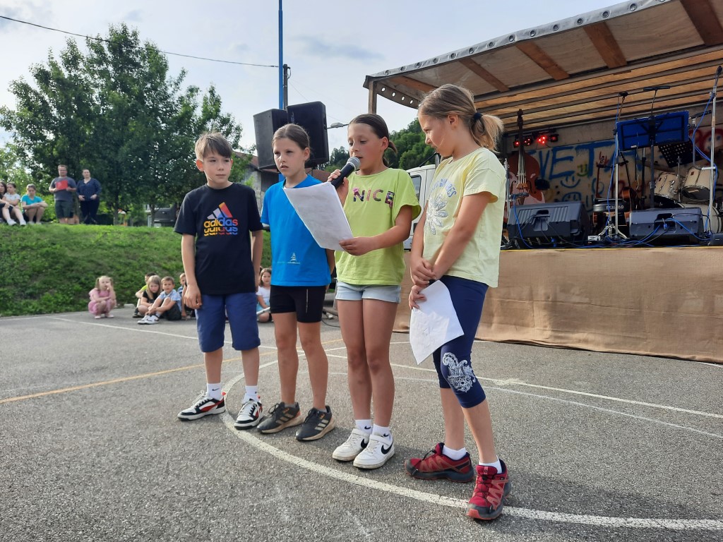 Zadnjo soboto v maju smo učenci PŠ Kamno sodelovali s kratkim programom na vaškem prazniku Sveta trojica na Kamnem. Tudi letos nas je doletela čast, da smo s svojim nastopom otvorili samo kulturno dogajanje, ki se je prepletalo z glasbo, petjem in spoznavanjem beneškega narečja Beneških žena iz Benečije. Gledalcem smo zapeli, zaigrali in zaplesali različne pesmi, deklamacije in banse. Skozi naš nastop smo želeli prikazati naše vzdušje čez celo šolsko leto: našo resnost, ko se moramo učiti, našo navihanost in občasno neupoštevanje pravil, spoštovanje, pomoč drug drugemu ter pričakovanje poletnih počitnic. Seveda smo si na koncu zaslužili bučen aplavz in za nagrado tudi nekaj kar imajo otroci radi – »porcijo pomfrija«.
