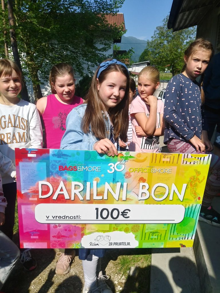 - šoli pa bon v vrednosti 100€ za nakup šolskih potrebščin v njihovih trgovinah.