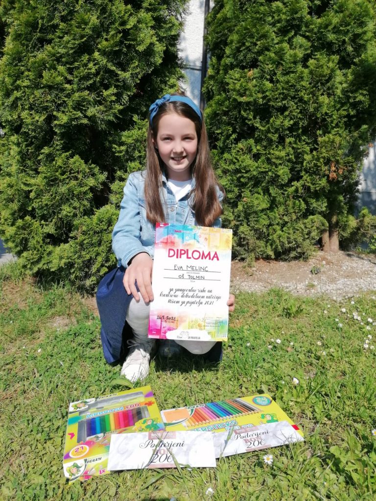 Likovno delo Eve Melinc, učenke 3. razreda, je bilo med 3500 prispelimi deli izbrano kot najboljše v kategoriji 1.triletja. Vsa dela zmagovalcev se natisne na platnice šolskih zvezkov, ki jih ponujajo v poslovalnicah OFFICE&MORE. Izkupiček od prodaje pa se podari v dobrodelne namene, in sicer sodelujočim osnovnim šolam, zmagovalcem ter Zvezi prijateljev mladine Slovenije.
