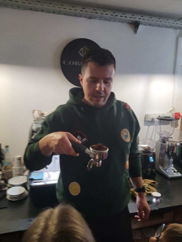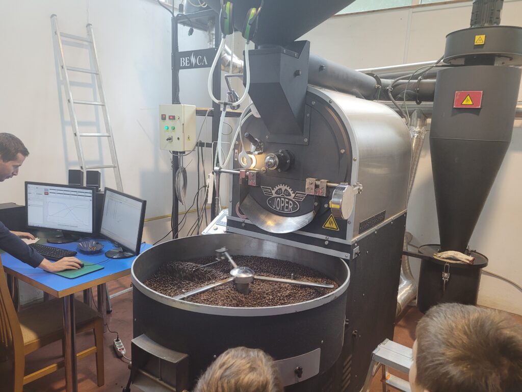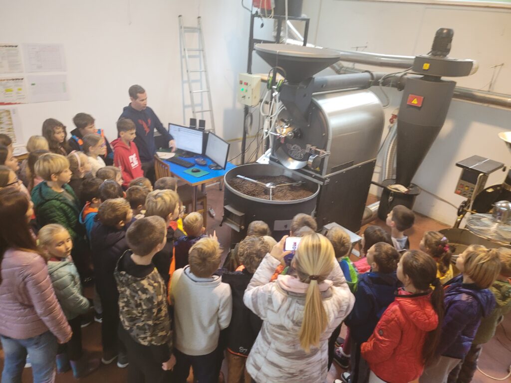 Mmmm, kako je dišalo. Seveda smo se tega vonja najbolj razveselile učiteljice ampak tudi učenci niso ostali ravnodušni. Prijazna lastnika Rok in Tadej sta nas z veseljem sprejela in nam razkazala ter nas podučila vse o praženju in pravilni pripravi kave. Predstavila sta nam stroj za praženje, pokazala kako deluje, kako natančen moraš biti pri praženju, povedala da je čas praženja zelo pomemben za okus kave. Ko smo si vse pogledali in preizkusili pa nam je lastnik Rok pokazal še pravilno pripravo kave. To je šele bilo zanimivo. Učiteljice smo bile postrežene z najboljšo kavo. Žal učenci kave niso poskusili, so jo pa vonjali, pražili in izvedeli veliko novega.