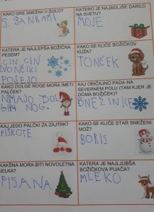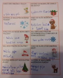 Zima je pravkar potrkala na naša vrata. Z mrazom nas je že obdarila, s snegom pa, žal, še ne. Mogoče nam ga pošlje med počitnicami, da bomo lahko uživali na snegu. Z učenci smo se spraševali, ali se Božiček lahko zatakne v dimniku. Je to sploh mogoče? Kako bi mu pomagali? Kar nekaj idej se je nabralo.