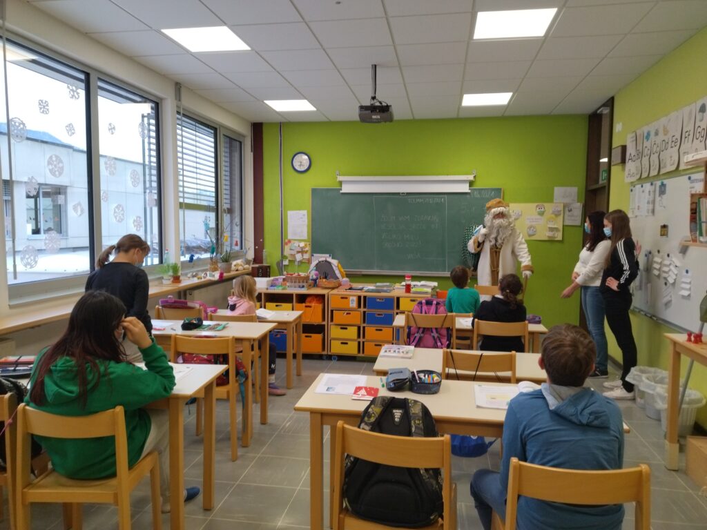 V torek, 21. 12., nas je obiskal Dedek Mraz. Zapeli smo mu pesmico in še njemu polepšali praznični december. Njegovi pomočniki palčki so mu povedali, da smo se trudili in pridno učili, zato je v košu imel darila, s katerimi je zelo razveselil učence. Zaželel nam je vesele, mirne ter zdrave praznike in se poslovil. Še najprej se bomo trudili, da nas prihodnje leto zopet obišče.
