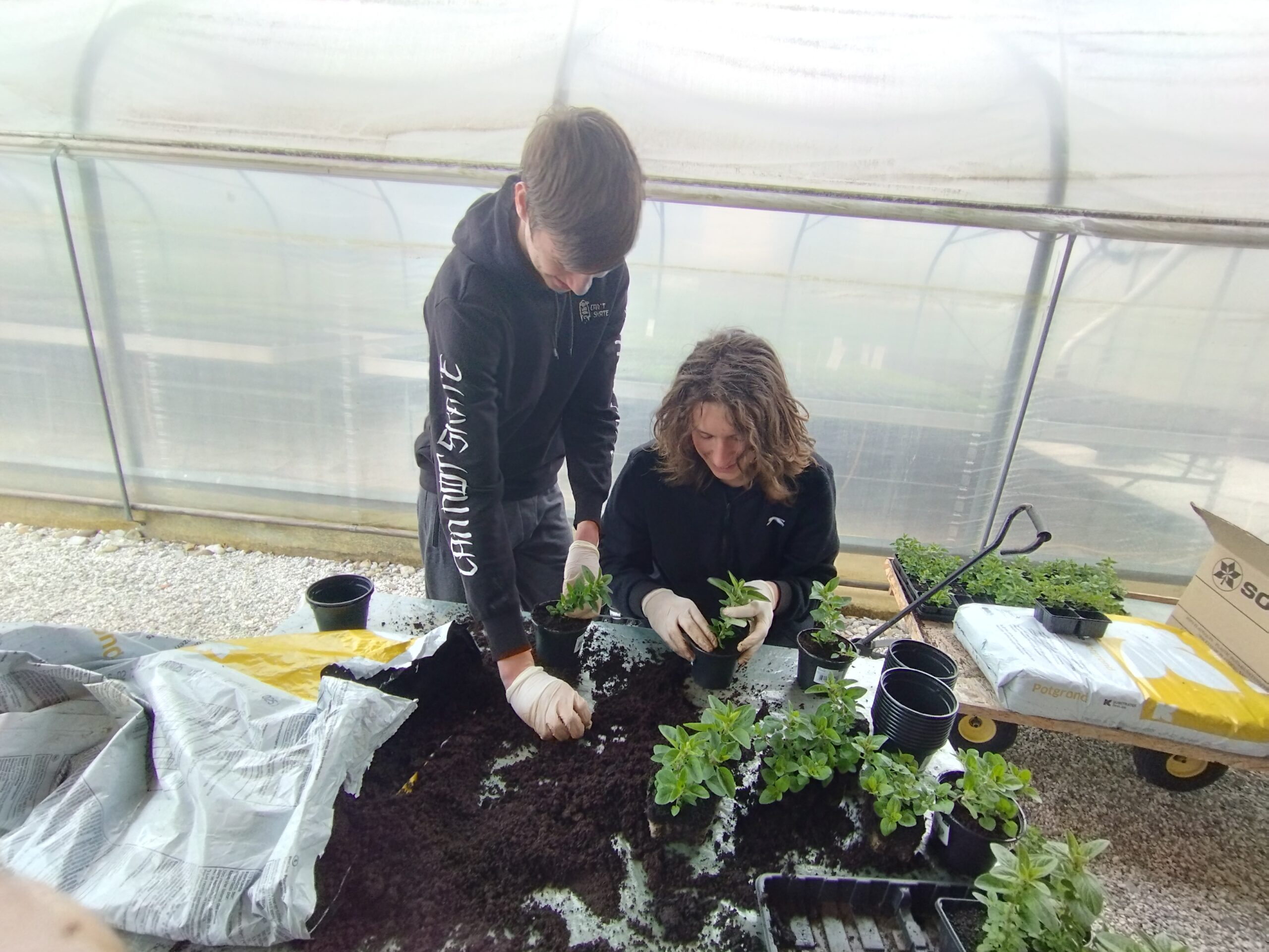 Julijan in Ivan, učenca 9. razreda OŠ Franceta Bevka Tolmin Podružnične šole za izobraževanje in usposabljanje otrok s posebnimi potrebami, sta od 25. 3. 2024 do 27. 3. 2024  šolsko klop zamenjala za rastlinjak v Invalidskem podjetju Posočje, kjer sta opravila tri tehniške dni, ki jim pravimo tudi delovna praksa. Z invalidskim podjetjem Posočje iz Poljubinja uspešno sodelujemo že vrsto let, za kar se jim ponovno iskreno zahvaljujemo.