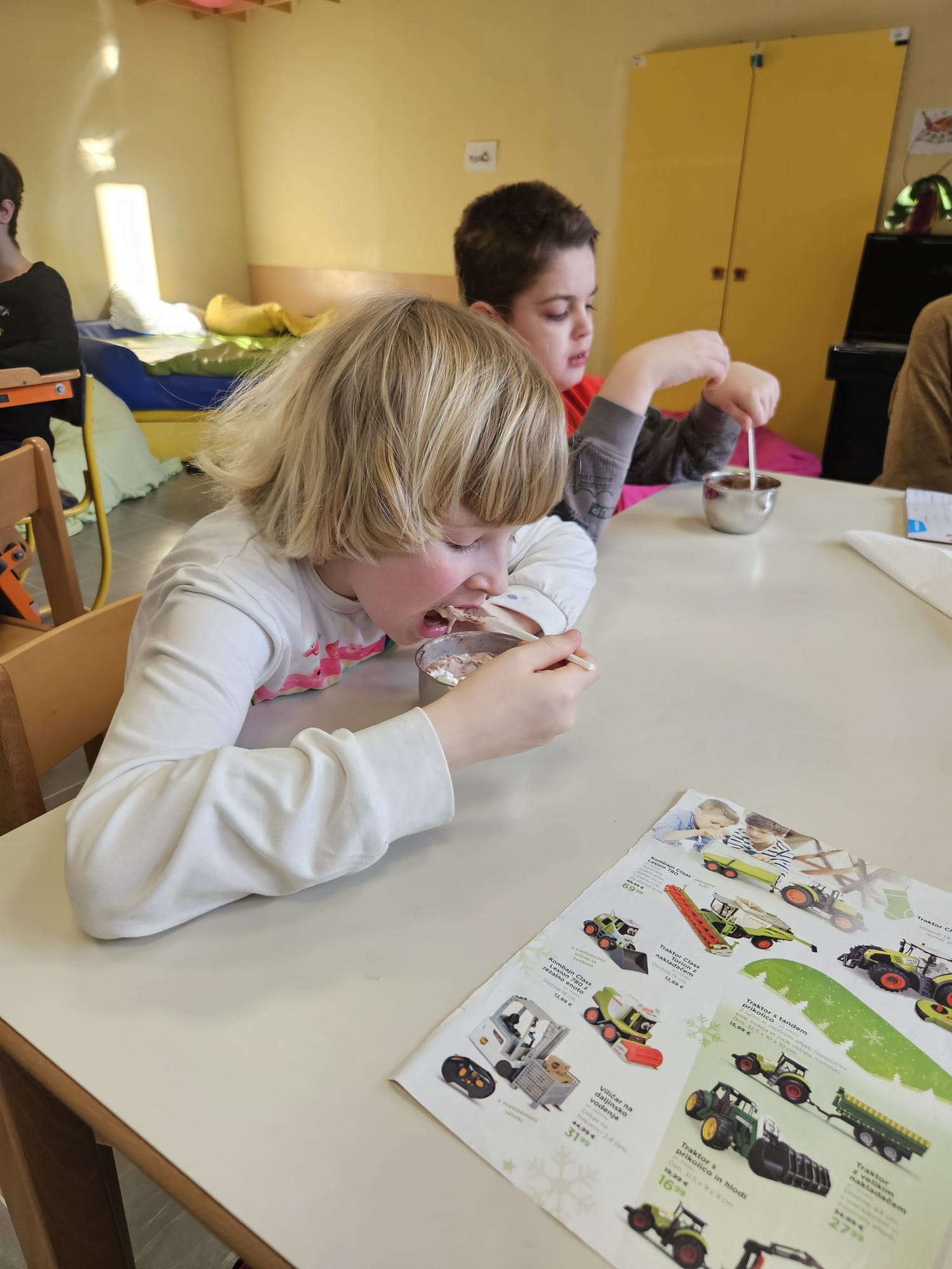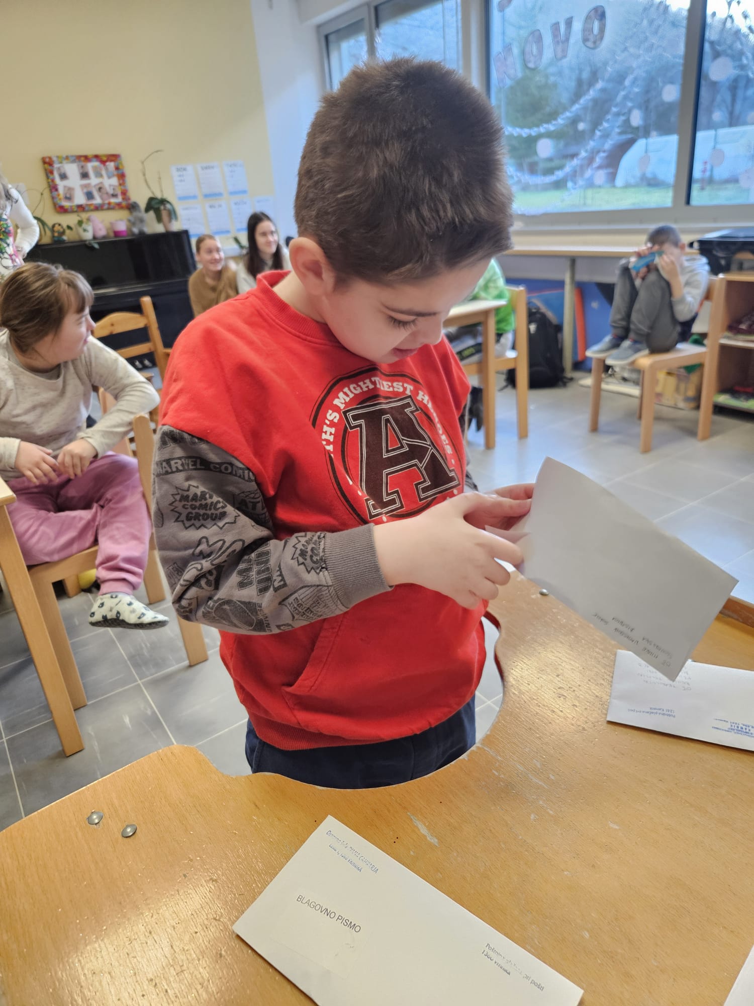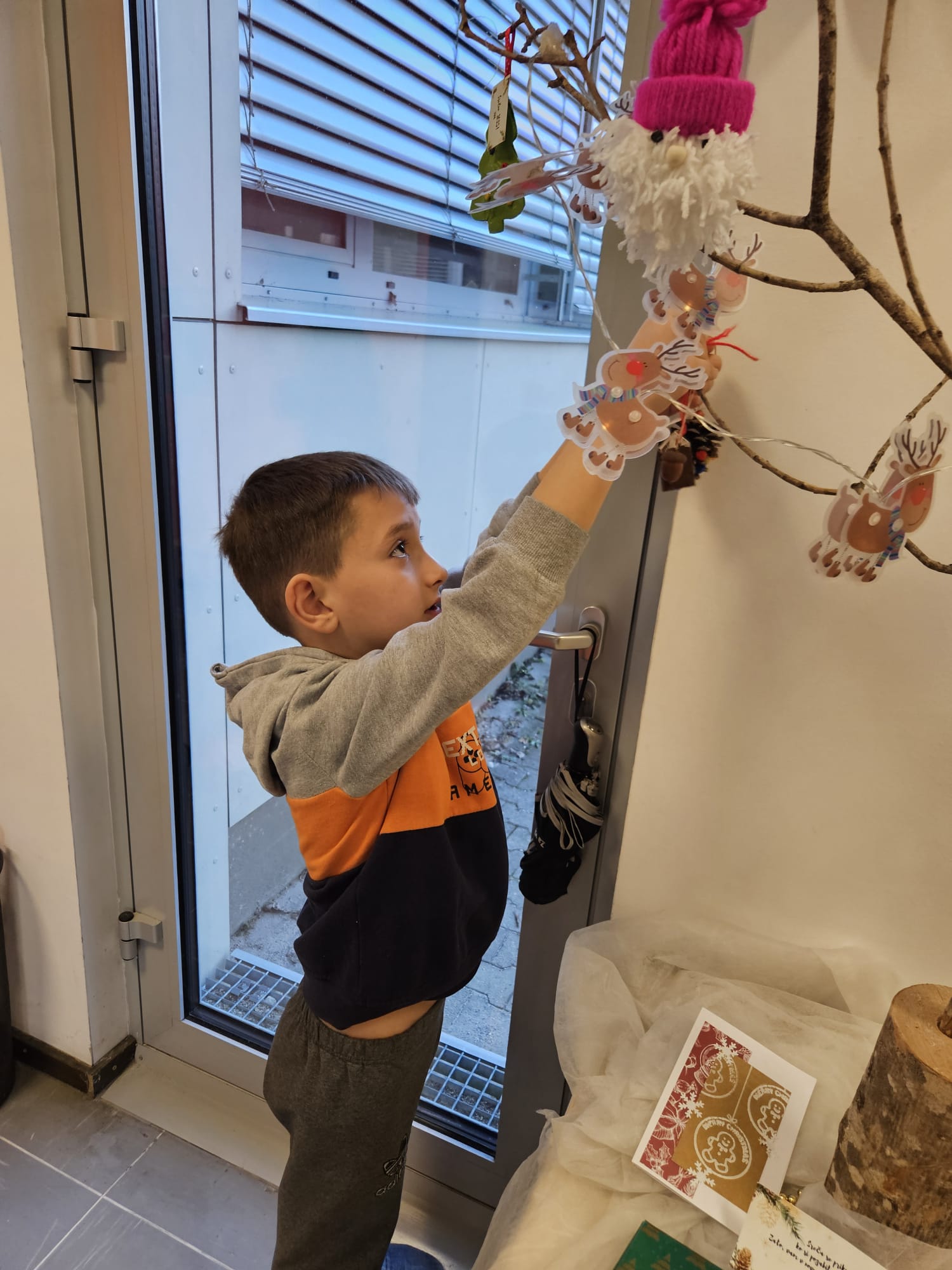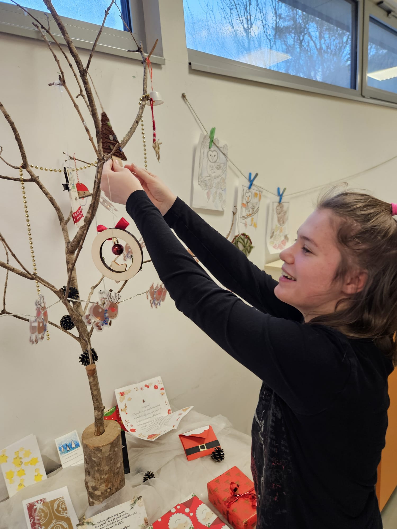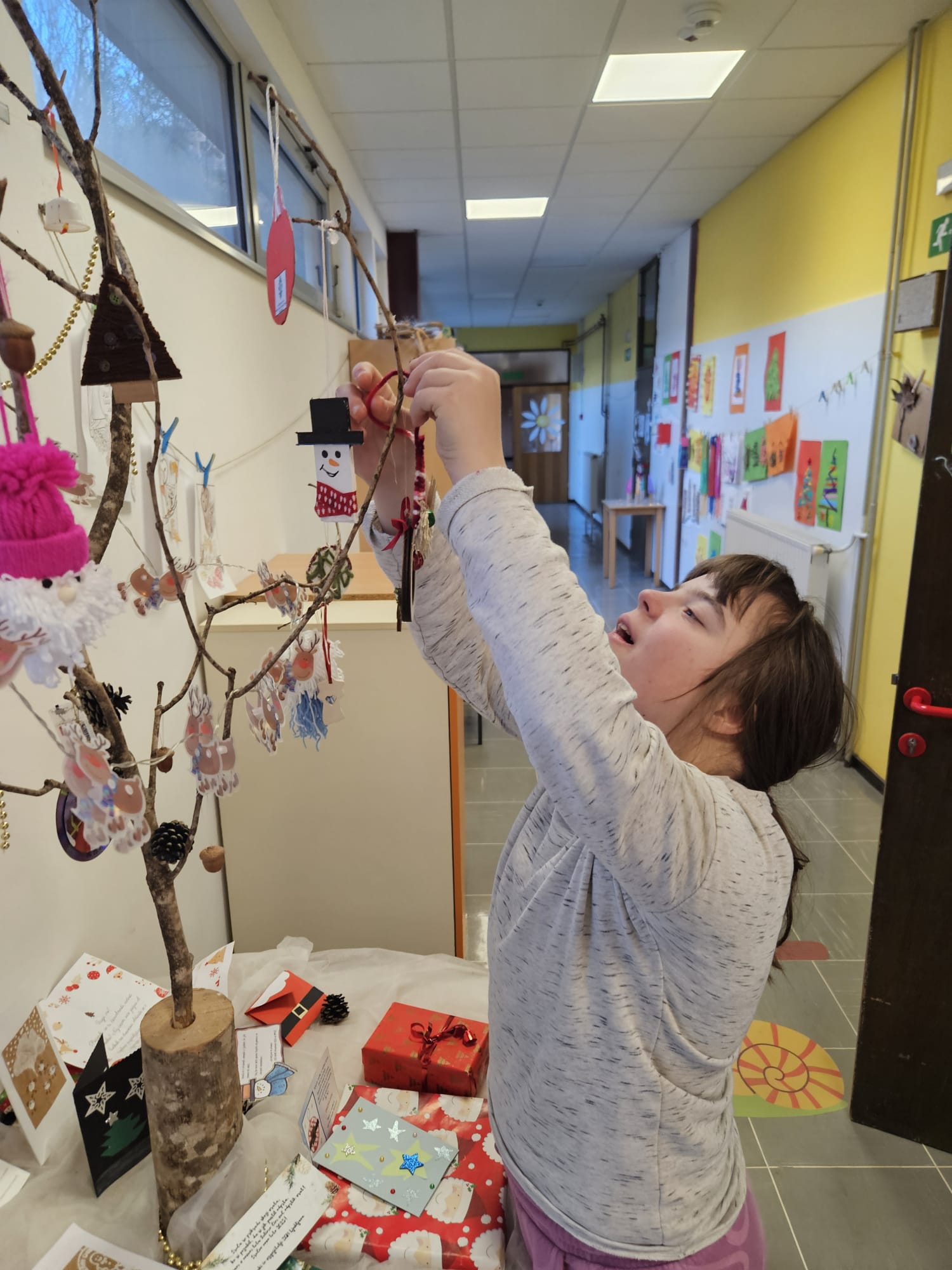 V torek, 24. 12. 2024, smo imeli učenci posebnega programa PŠIUOPP še zadnji dan dejavnosti v tem šolskem letu. Zjutraj smo odpirali pisma z okraski za smrečico, ki so jih izdelali ter poslali učenci drugih šol s prilagojenim in posebnim programom po Sloveniji v okviru projekta izmenjave okraskov, v katerem smo sodelovali tudi mi. Z okraski smo okrasili drevo pred učilnico. Kot se spodobi za december, smo si zatem pripravili vročo čokolado in se ob njej pogovarjali o prazničnih načrtih. Po malici smo si v večnamenskem prostoru osnovne šole ogledali proslavo ob dnevu reformacije, ki je letos govorila o pesniku Simonu Gregorčiču. Dan smo zaključili z novoletnim rajanjem, petjem, plesom ter poslušanjem božičnih pesmi. Vsem želimo lepe in mirne božično – novoletne praznike.