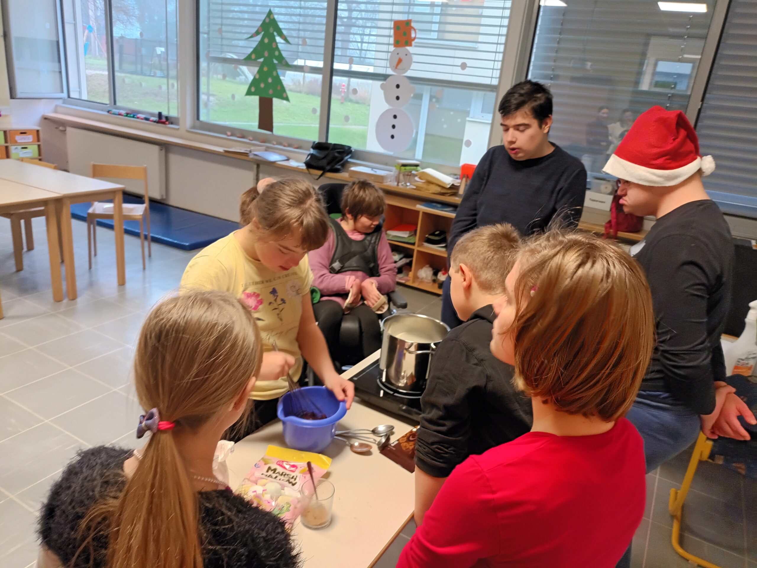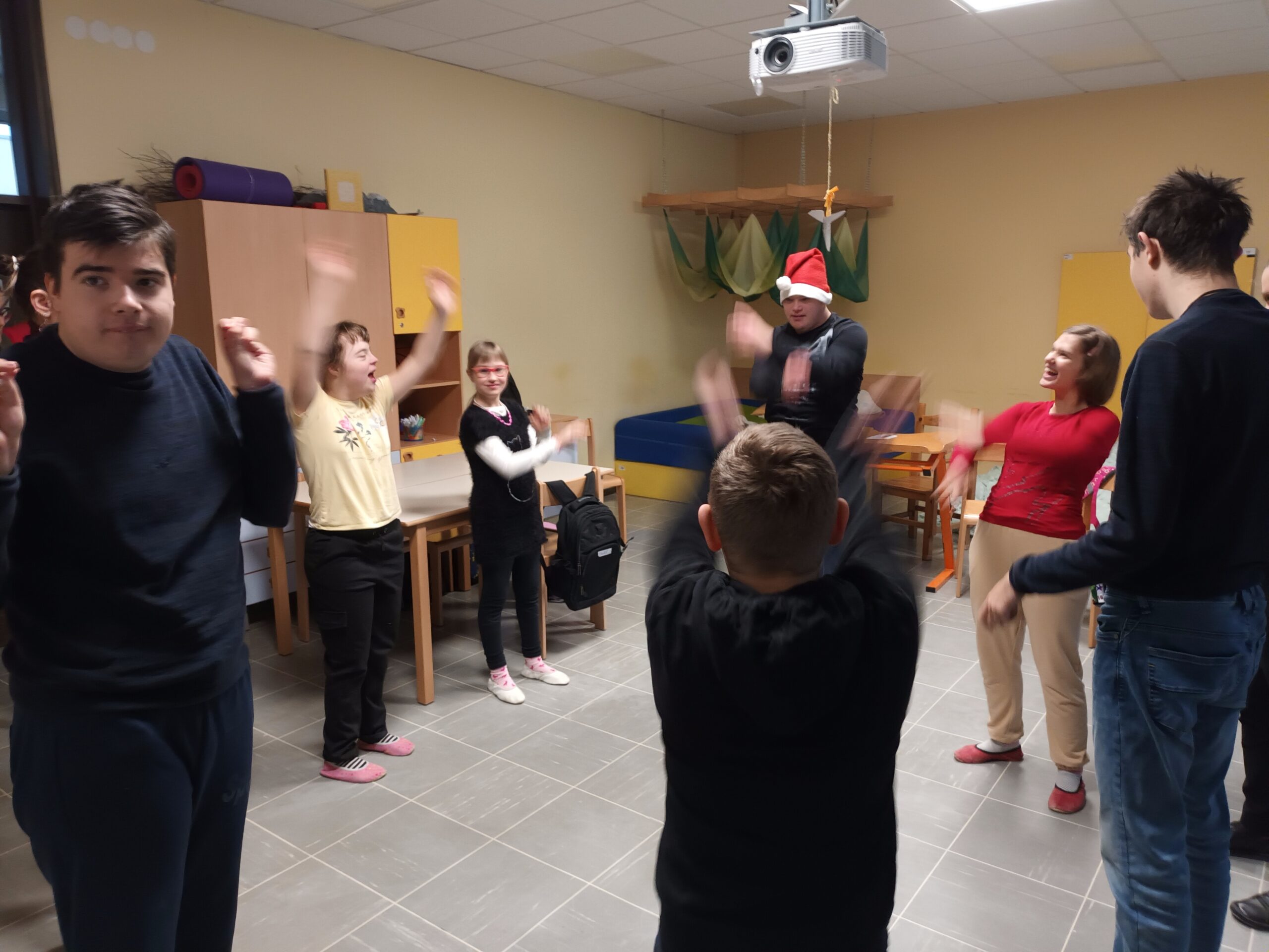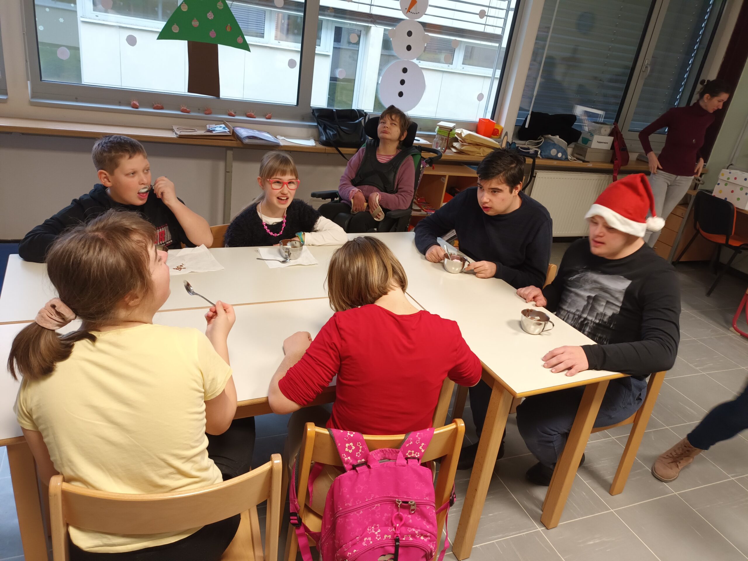 Na zadnji šolski dan pred novoletnimi počitnicami smo učenci posebnega programa vzgoje in izobraževanja izvedli delovni dan: novoletno rajanje. Na ta dan smo se z različnim dejavnostmi poslovili od starega leta in z rajanjem napovedali prihod novega. Dan smo začeli z božično telovadbo, pri kateri se je vsak od nas prelevil v Božička in pokazal vajo, ki smo jo vsi drugi z njim izvedli. Po božični telovadbi smo pripravili vročo čokolado s penicami, ki je šla vsem v slast. Nato smo si ogledali proslavo ob dnevu samostojnosti in enotnosti. Kot se za novoletno rajanje spodobi, smo naš delovni dan zaključili s plesom in petjem božičnih pesmi.