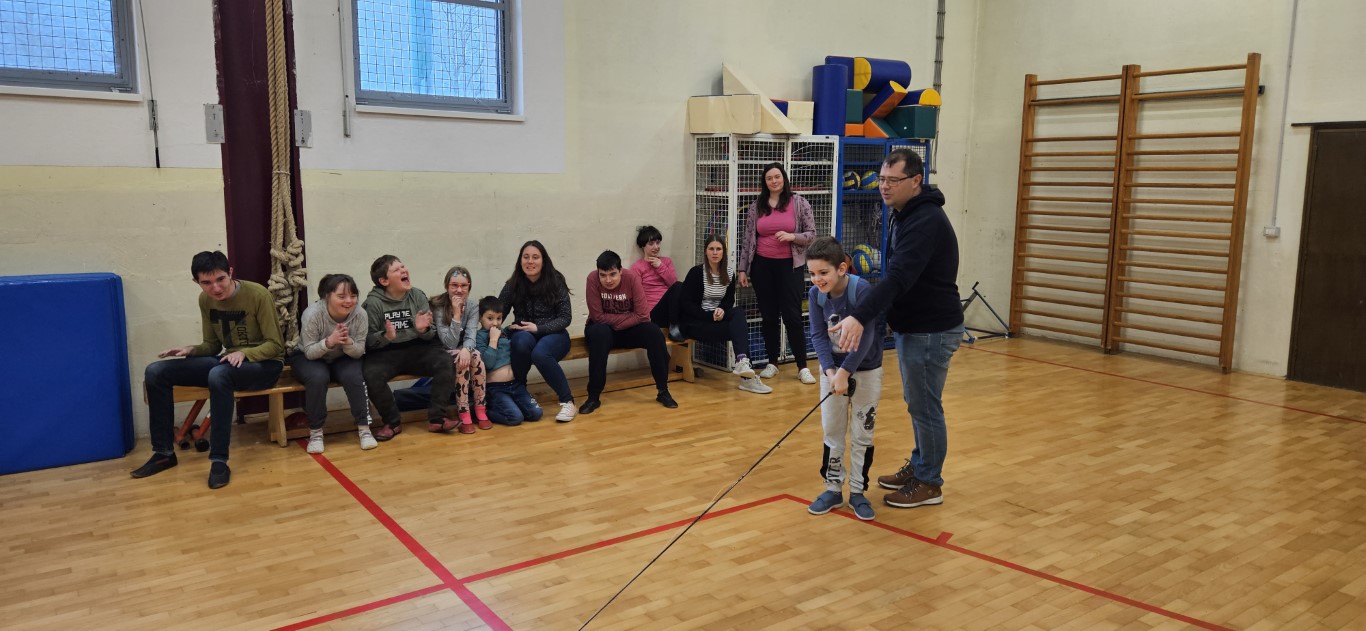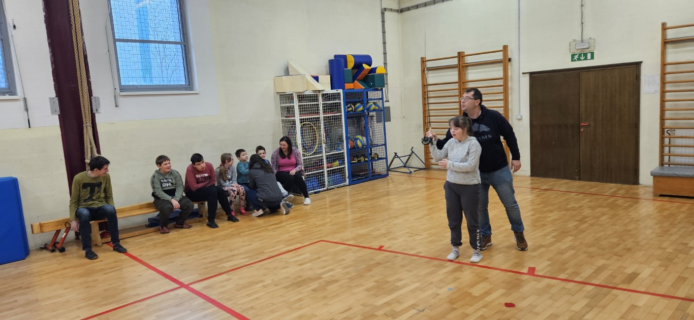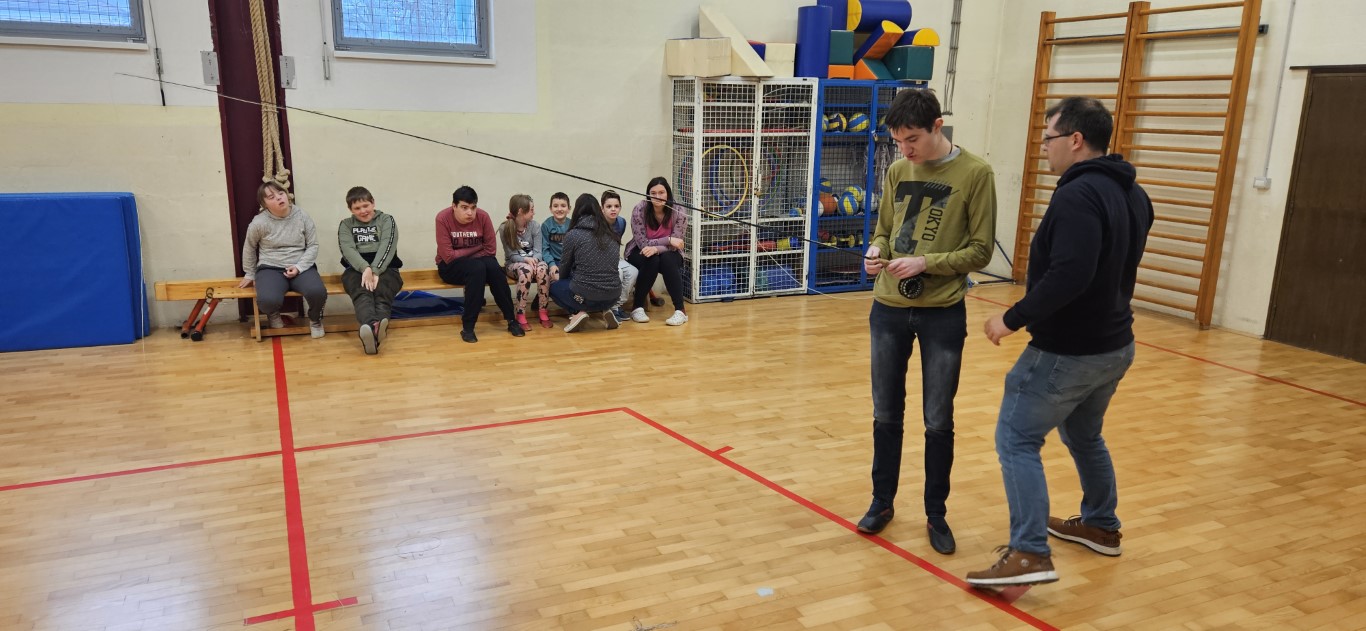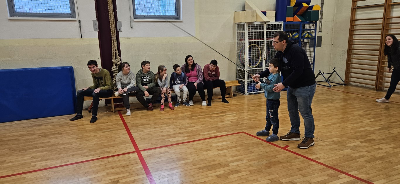 Nato pa smo se preselili v telovadnico, kjer so se učenci lahko preizkusili v muharjenju. Čisto vsakemu, ki je to poizkusil, je šlo odlično od rok. Če bi v resnici stali na bregu reke, bi zagotovo ujeli kakšno ribo!