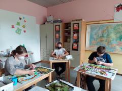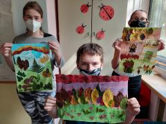 V ponedeljek, 27. 9. 2021, smo se v okviru tehniškega dne poigrali z listi, ki smo jih pridno nabirali čez vikend. Nastale so prav zanimive slike, ki smo jih poimenovali: čarobni gozd, domačija in gorski mir.