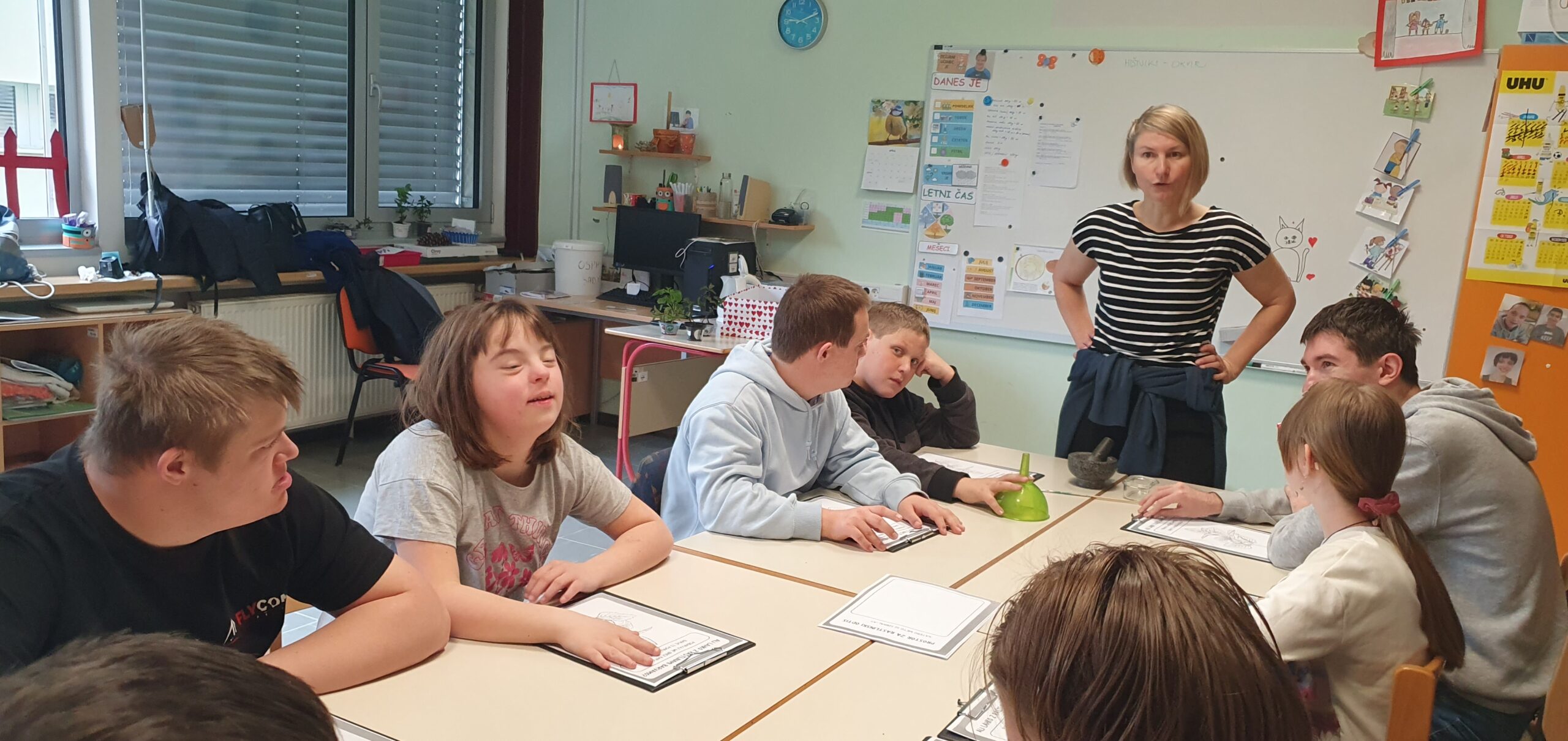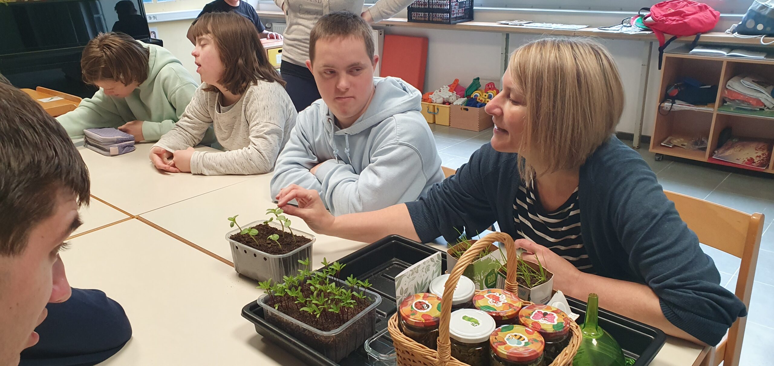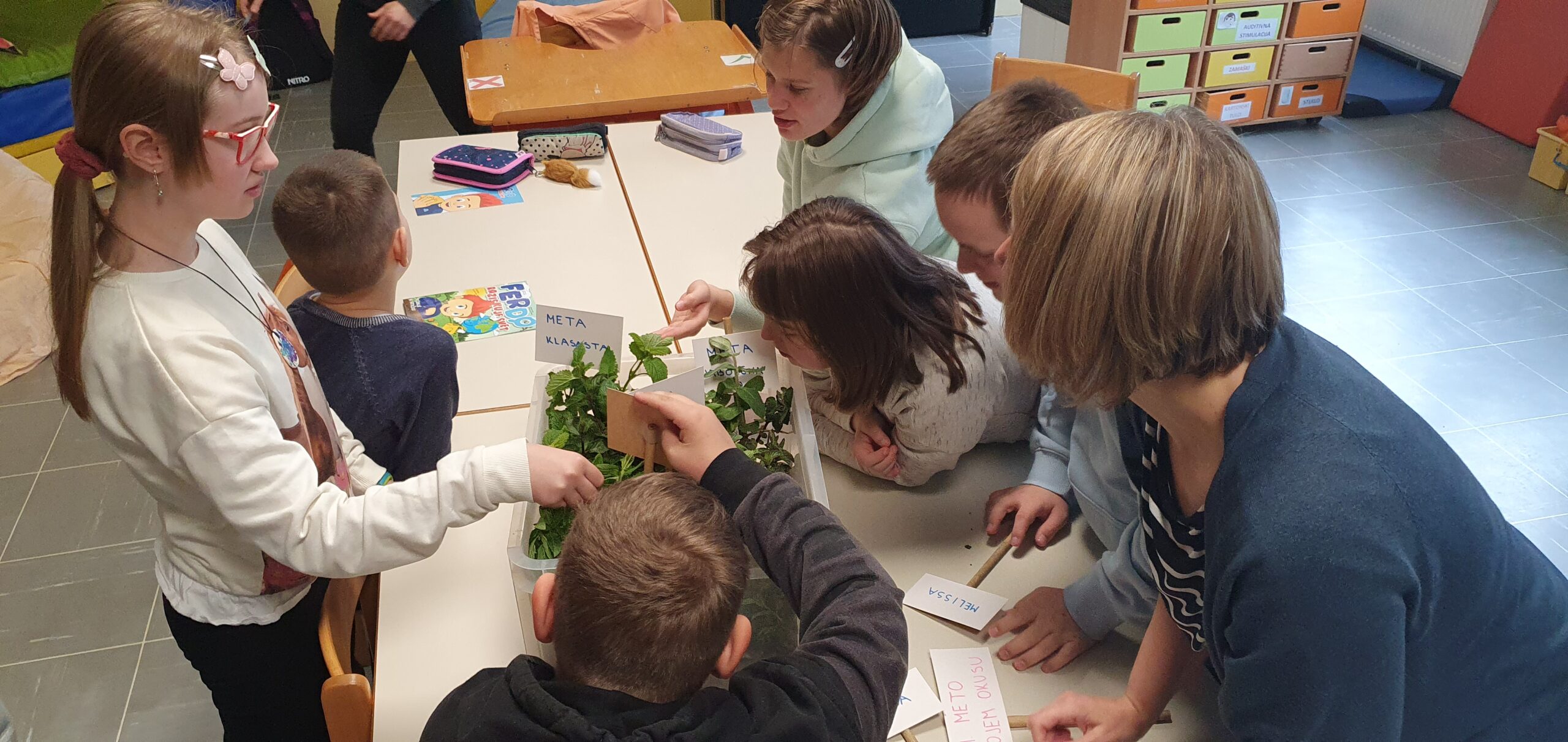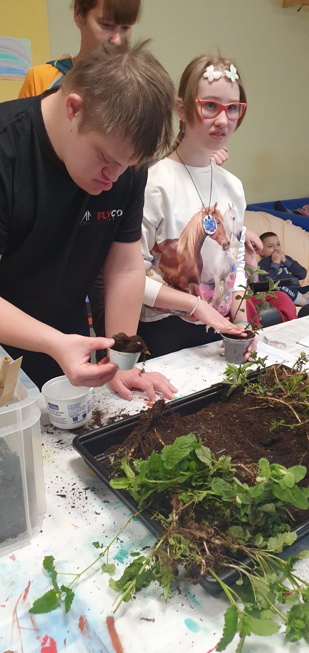 V sredo, 24. 4. 2024, so učenci in učenke posebnega programa podružnične šole za izobraževanje in usposabljanje otrok s posebnimi potrebami izvedli EKO dan. Najprej je prišla Patricija Rejec iz Posoškega razvojnega centra in izvedla delavnico o zeliščih. Učenci in učenke so spoznali, da obstajajo različne vrste mete (čokoladna, jabolčna, maroška …). Potem je vsak izmed njih izbral vrsto mete, ki jim je bila najbolj všeč. Vohali so, tipali in celo poskušali meto. Na koncu so se naučili, da lahko iz mete naredijo barvo in pobarvajo slikico. Ker se 24. 4. obeležuje tudi slovenski dan brez zavržene hrane, učenci in učenke so iz odstankov malice (iz sadja) naredili sadni smoothie. Ob pripravi smoothija so uživali in se na koncu posladkali. Prejšnji teden je na naši šoli potekala izmenjevalnica oblačil in na povabilo učiteljice Jasne Rupnik, so si učenci in učenke poiskali kos rabljenega oblačila in se ob tem zelo zabavali.