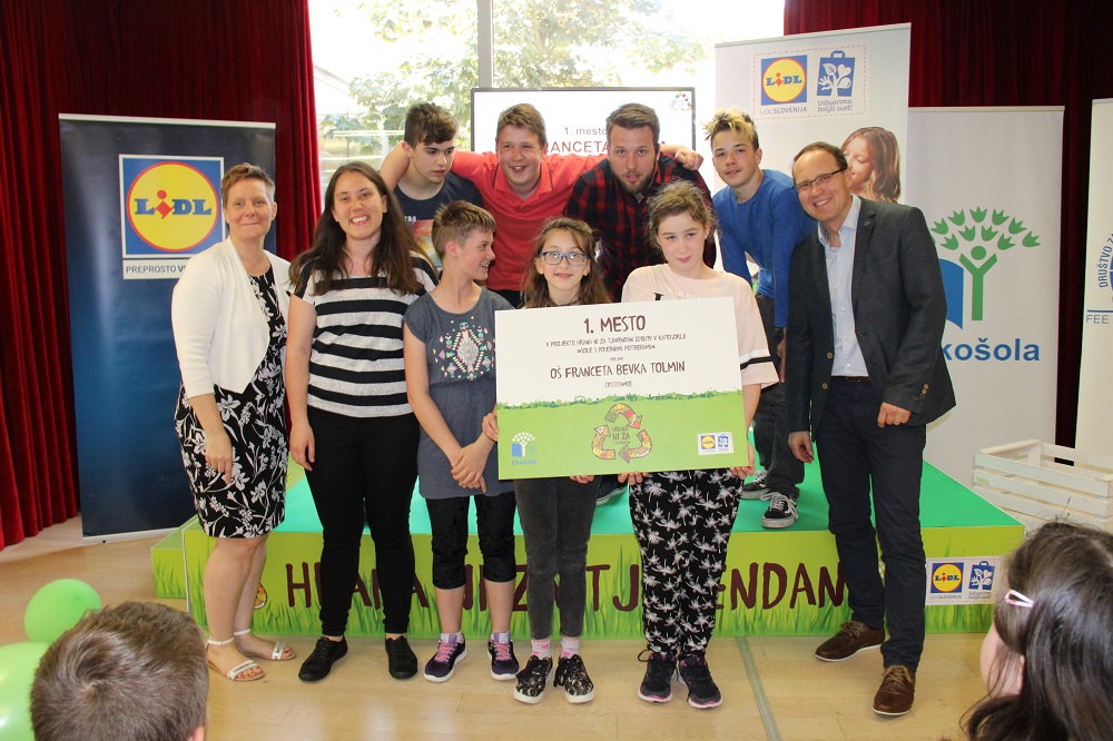 Povabljeni smo bili na slavnostni zaključek projekta z razglasitvijo rezultatov in podelitvijo nagrad v Celje. Z veseljem smo se ga s predstavniki učencev udeležili. S seboj smo nesli predstavitveni plakat našega projekta, obilo dobre volje, smeha in energije, nagrajeni pa smo bili s srečanjem Zdravka Lidla, čudovitimi spomini in z Lidlovo kartico v vrednosti 300 €.