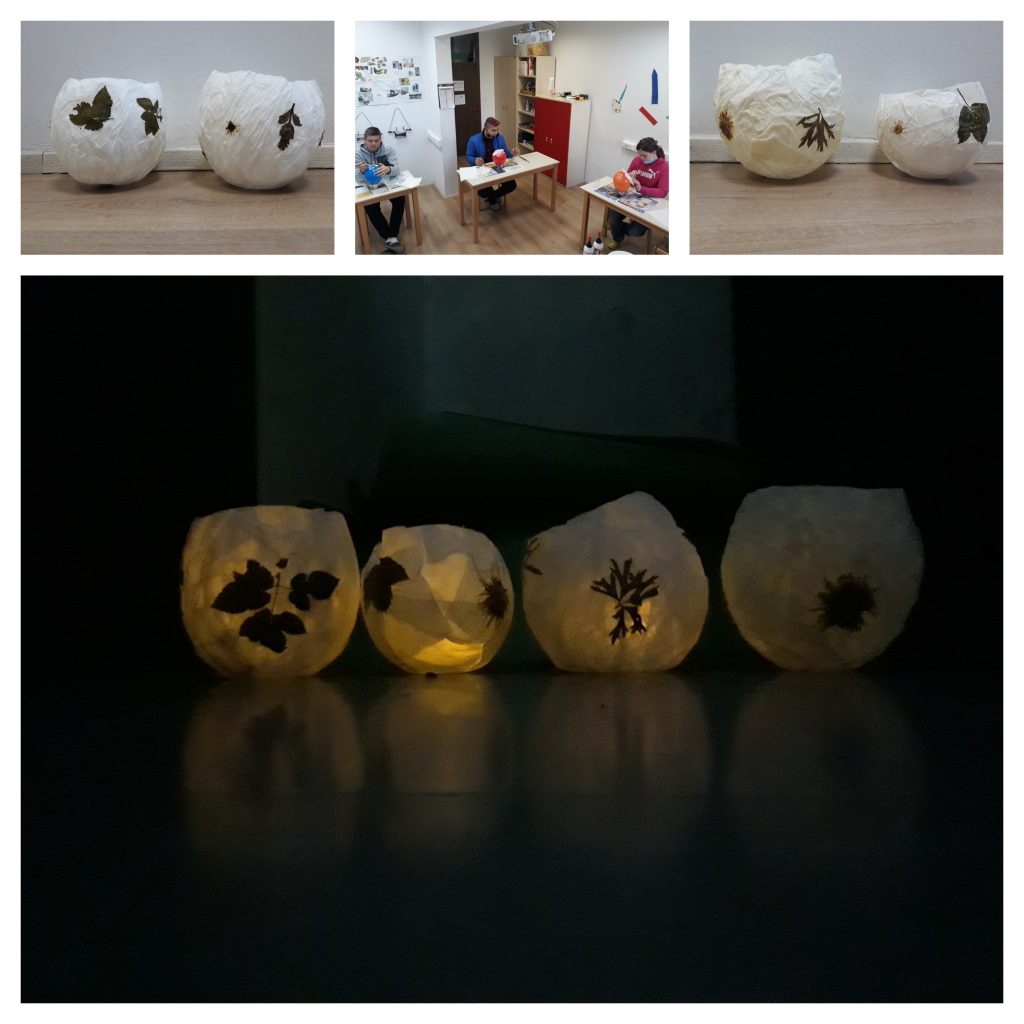 V četrtek, 15. 4. 2021, smo učenci 8. in 9. razreda prilagojena programa z nižjim izobrazbenim standardom na Podružnični šoli za izobraževanje in usposabljanje otrok s posebnimi potrebami izvedli tehniški dan: izdelki iz naravnih materialov. Naše priprave na ta dan so se začele že dva tedna prej, ko smo na travniku nabrali zgodnje pomladanske cvetlice in druge rastline. Te smo v razredu stisnili med debele in težke knjige ter jih posušili. Nato smo se v sklopu tehniškega dne lotili dela in iz posušenega cvetja: marjetic, regratovih cvetov, spominčic … ter papirja izdelali čarobne lučke, ki bodo osvetljevale naše domove.
