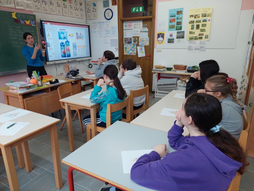 Sledil je obisk dipl. m. s. Špele iz Zdravstvenega doma Tolmin, s katero smo, v enournem predavanju in delavnici, obnovili, kako skrbimo za telesno zdravje – od gibanja, pitja vode, prehrane, spanja do osebne higiene. Najbolj nas je navdušil aparat z modro lučko, ki pokaže, kje rok nisi najbolje umil.