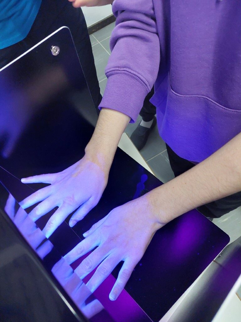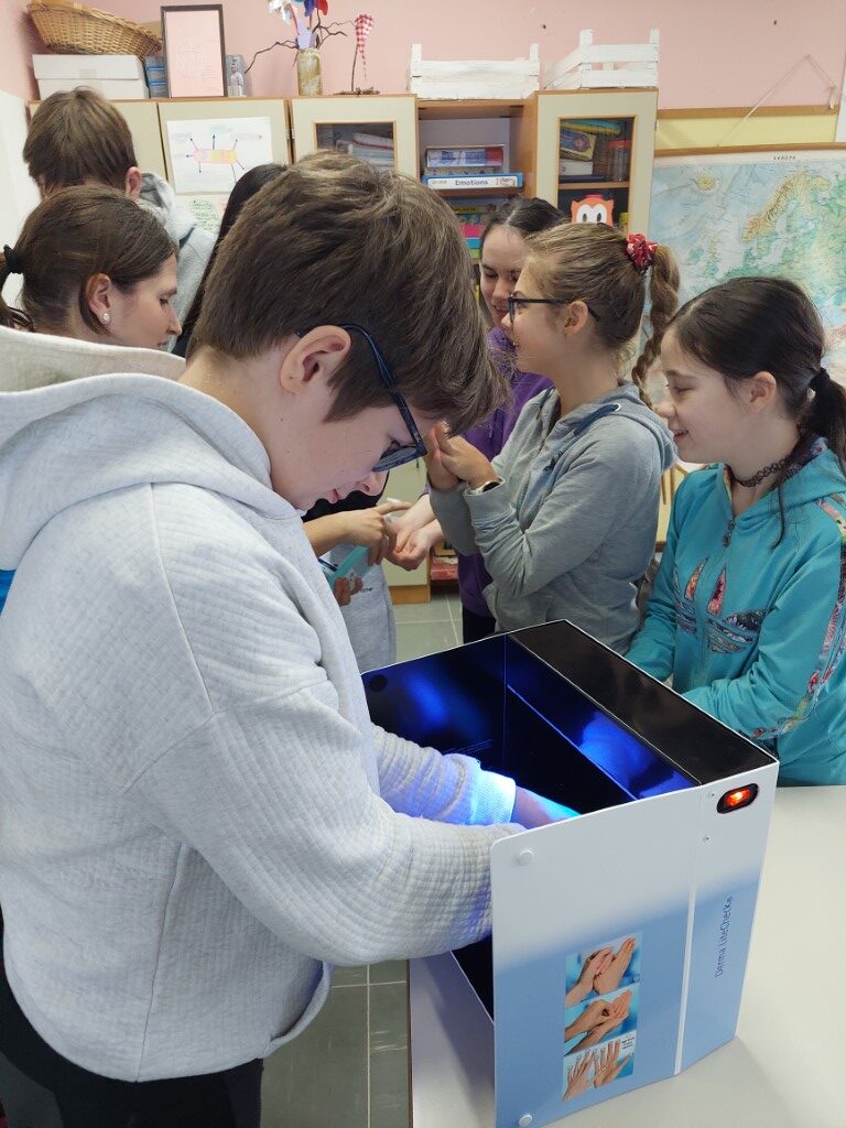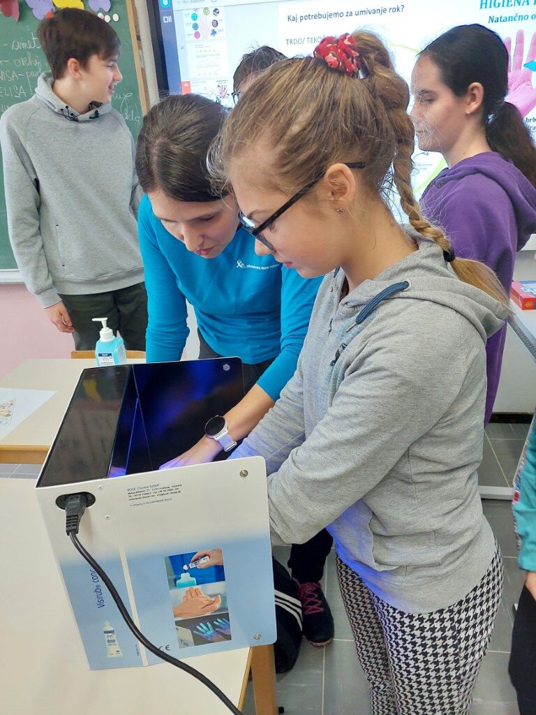 – Najbolj nas je navdušil aparat z modro lučko, ki ti pokaže, kje rok nisi najbolje umil. Najprej smo si umili roke. Nato smo položili roke v aparat z modro lučko. Videli smo, kje smo se slabo umili, ker so bile tam temne lise. Sanja