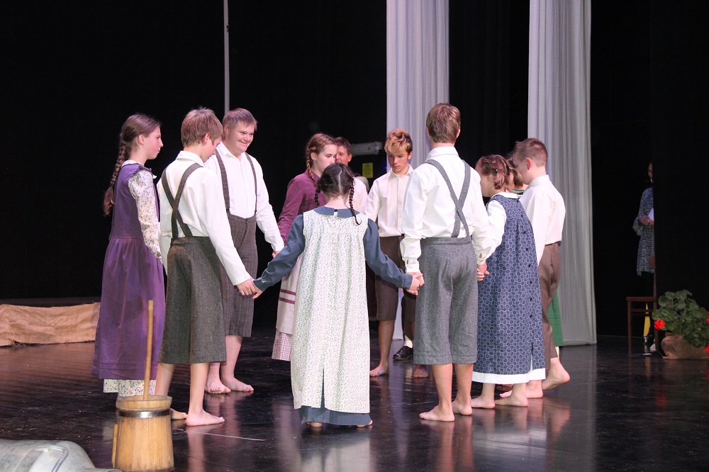 Phči ‘n bebrce smo prikazali jutranje prebujanje otrok nekoč, ko je za jutranje crkljanje v postelji, igro in plese pogosto zmanjkalo časa. Izštevali smo se, lovili, zaplesali ljudska plesa zibenšrit in rašpla ter se ob ljudski pesmi Naša mati kuha kafe posladkali s kavo. Na harmoniki nas je spremljal harmonikar Bogdan Kosmač.