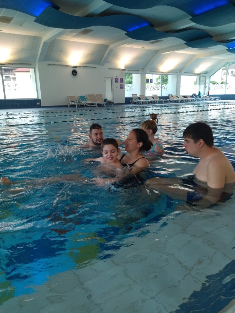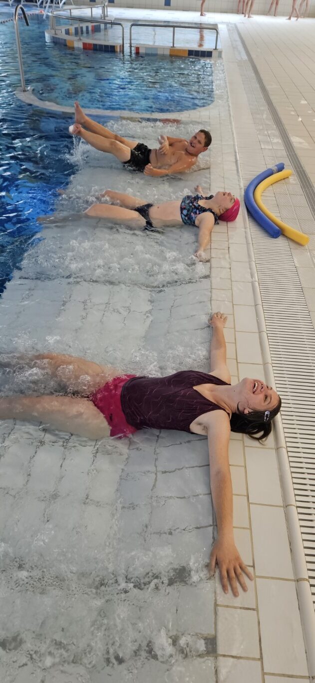V letošnjem šolskem letu smo obiskovali bazen s ciljem izvajanja gibanja v vodi in plavanja po konceptu Halliwick. Ta poteka individualno in skupinsko. Obisk bazena je zelo priljubljen pri naših učencih. Poleg tega, da gibanje v vodi pozitivno vpliva na boljšo gibljivost, je zelo učinkovita za boljše počutje in umirjanje otrok.
