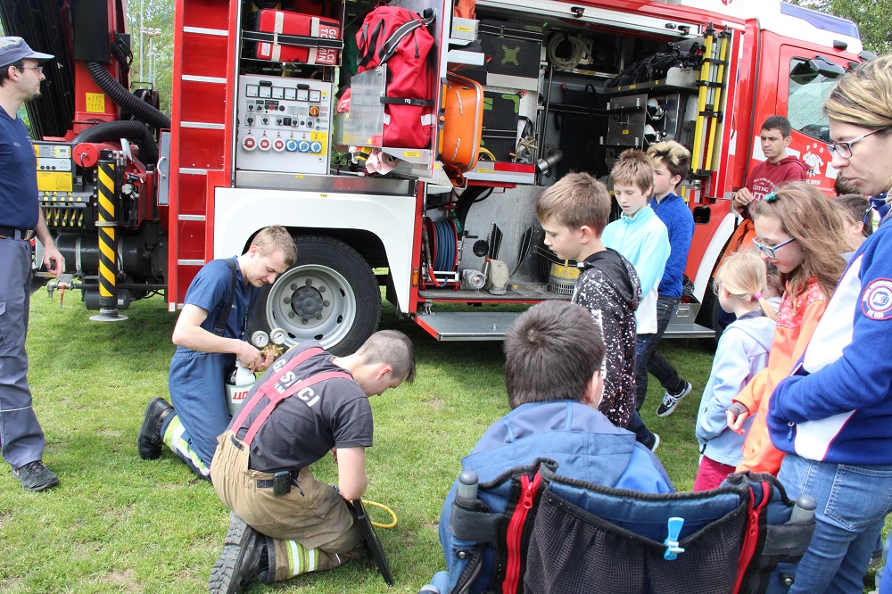 Pristojni gasilec in njegova pomočnika so podrobno predstavili svoje delo ter gasilsko vozilo, podrobno razložili, kako delujejo kot tim v najrazličnejših, pogosto zelo nevarnih, nesrečnih situacijah in kako si pri tem pomagajo s specialnim vozilom in pripomočki, ki jih vozilo vsebuje.