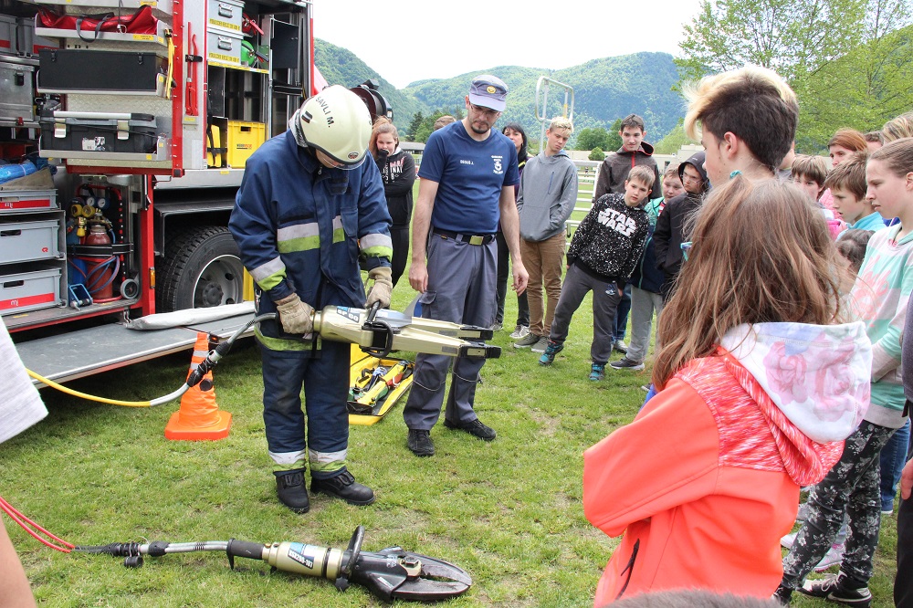 V četrtek, 16.05.2019, so nas obiskali gasilci PGD Tolmin. Ob 11:30h so gasilci prišli s specialnim  gasilskim vozilom, opremljenim z vsemi pripomočki, ki se uporabljajo za reševanje v vseh vrstah nesreč: naravnih, elementarnih, nesrečah na cestah itd.
