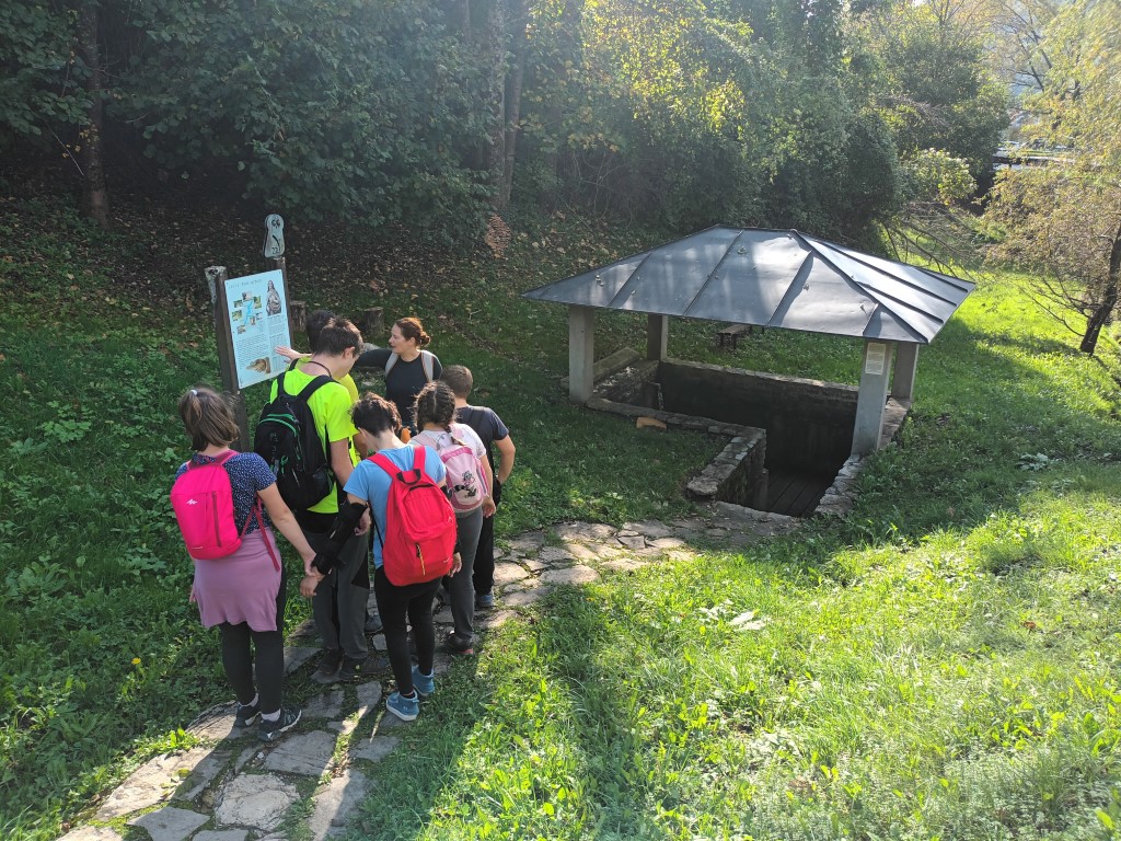 Pot nas je vodila v Modrej. Skozi vas smo se sprehodili do kapelice Sv. Lucije in zdravilnega izvira Pod grmom. Tam smo izvedeli, da naj bi imela voda iz tega izvira zdravilno moč, pomagala naj bi k boljšemu vidu, zato smo si vsi dobro umili oči s to čudežno vodo.