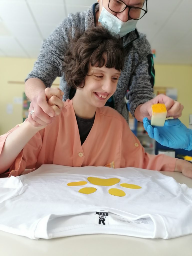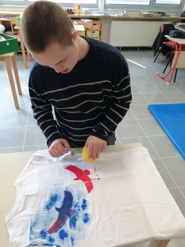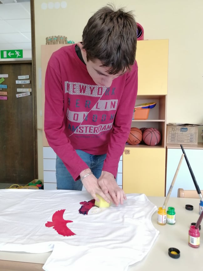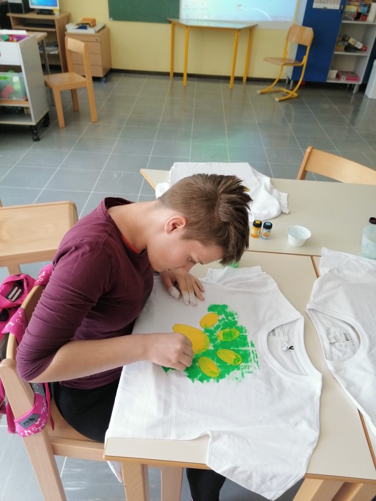 Učenke in učenci posebnega programa smo se v četrtek, 27. 5. 2021, spoznali s tiskom na majice. S pomočjo posnetkov smo spoznali, kako izgleda tiskarski delo.