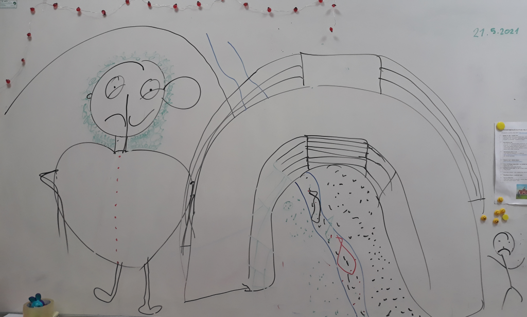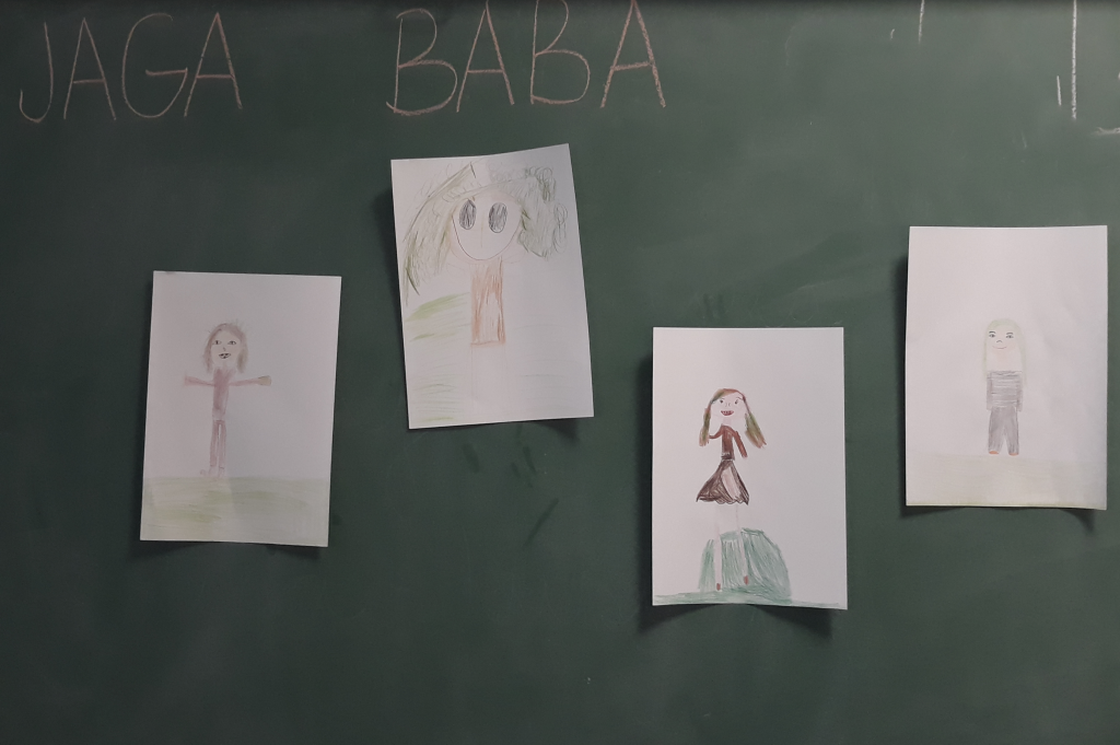 Najprej smo po oddelkih s pomočjo videoposnetkov in ostalega slikovnega gradiva spoznali znamenitosti Tolminskih korit, od termalnega izvira, Medvedove glave, Skakalc, Hudičevega mostu do Zadlaške (Dantejeve) jame, v kateri prebiva nagajiva starka, po imenu Duga baba. Seznanili smo se tudi s pravili obnašanja v Triglavskem narodnem parku, saj so Tolminska korita najnižja vstopna točka v Triglavski narodni park. Preden smo odšli k Tolminskim koritom in si vse lepote ogledali še sami, smo v šoli po poslušanju pripovedk o Dugi babi nagajivo starko tudi narisali.