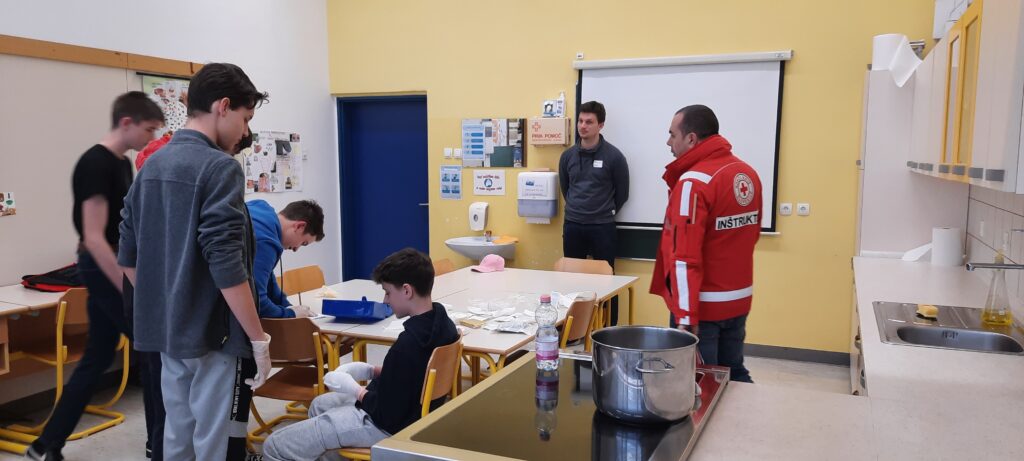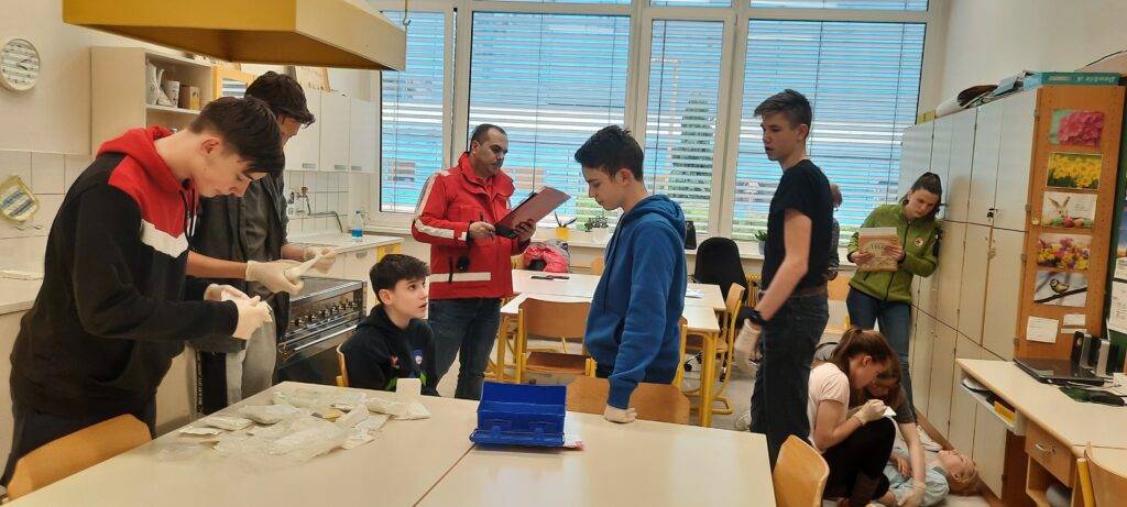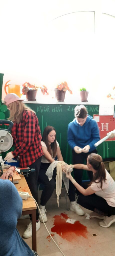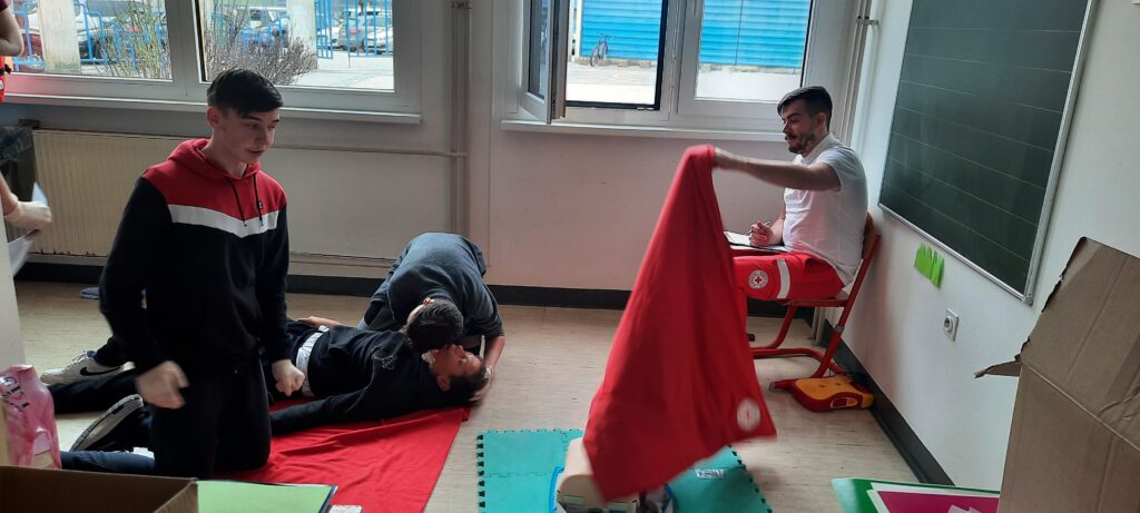V sredo, 19. 4. 2023, smo se v Idriji udeležili regijskega tekmovanje iz prve pomoči. Ko smo prišli v Idrijo smo najprej pojedli kosilo, nato smo imeli nekaj prostega časa. Tekmovanje je bilo zgrajeno iz teoretičnega in praktičnega dela. Teoretični del je vseboval test iz zgodovine rdečega križa in test iz znanja prve pomoči. Praktični del pa je bil sestavljen iz treh delovišč, kjer smo morali oskrbeti različne poškodbe: oparine, zlome, amputacijo roke in druge. Zagreto smo se borili in tako v celotnem seštevku zasedli 5. mesto, v naši Primorski regiji pa 2. mesto. Uvrstitev na državno tekmovanje se nam je izmuznila za las, a smo ob tem pridobili novo znanje in izkušnje.