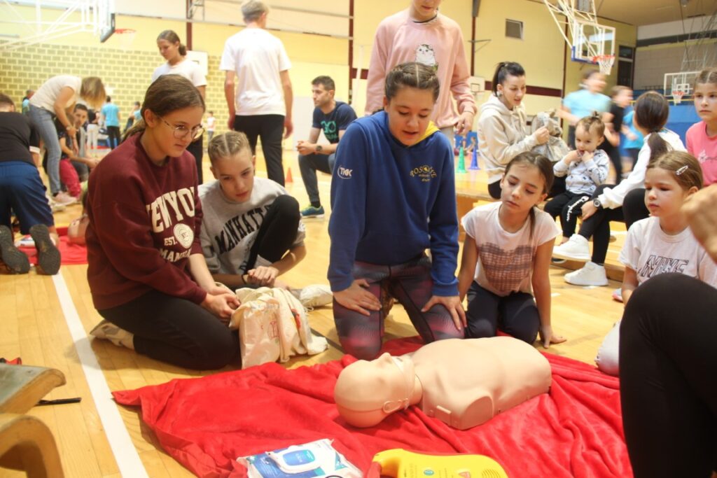 V športnem duhu je namizni tenis potekal pod vodstvom učitelja športa Mateja Gaberščka, medtem ko je Damjan Cvek iz Soškega alpinističnega odseka pripravil raznolike izzive na plezalni steni. Šolska ekipa prve pomoči je nazorno predstavila temeljne postopke oživljanja – obiskovalci so se lahko preizkusili v oživljanju in uporabi avtomatskega defibrilatorja. Ivan Muznik je skupaj z varovanci Kajak kluba Soške elektrarne pripravil zanimivo delavnico veslanja, Črt Juren pa je zainteresirane navdušil s triki in učenjem osnov žongliranja. Poleg delavnic sta za naše telo poskrbeli še Jasna Rupnik z vadbo joge in Tina Ozebek z vadbo za celo telo. Hvala vsem, ki ste s svojo dobrodelnostjo pripravili res zanimive in poučne delavnice ter vadbe.