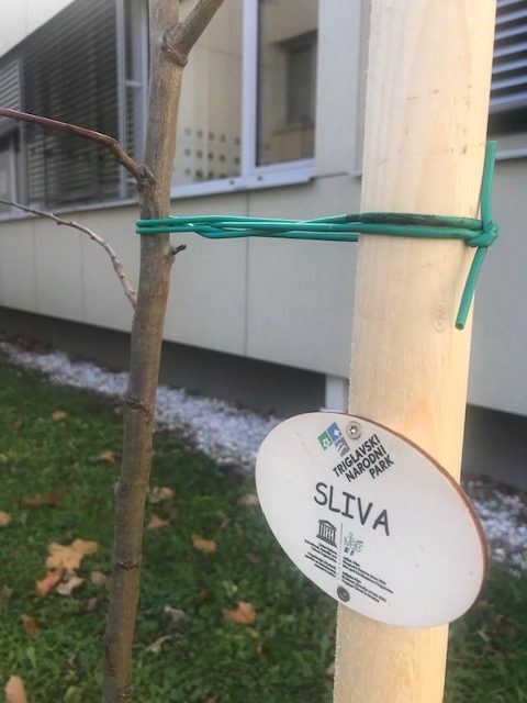 Obljubili so nam, da nam bodo podarili drevo. In to ne samo eno. Podarili so nam 4 sadna drevesa – slive, za vsako enoto po eno. Dve smo posadili v parku ob centralni šoli, po eno na PŠ Volče in PŠ Kamno.