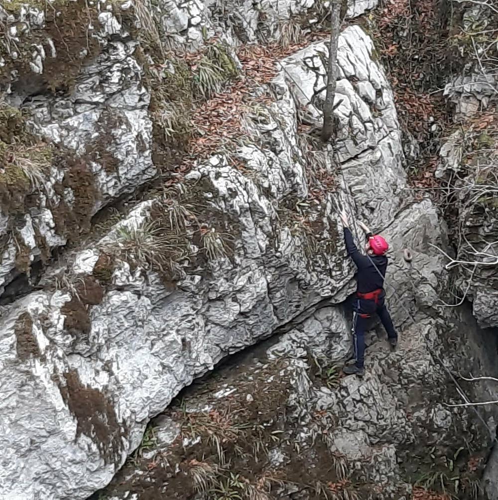 Naše bivanje v domu Rak se izteka, vendar naših dogodivščin še ni konec. Danes smo se preizkusili v plezanju. Na začetku smo s strahom poslušali navodila učiteljev in nihče se sprva ni upal javiti, da bo poskusni zajček. A ko smo šli prvič, smo šli  še drugič, pa še tretjič…. Najprej smo preplezali naravno steno, nato pa smo se spustili po jeklenici. Joj, kako smo se zabavali!