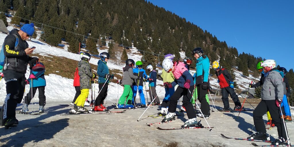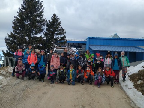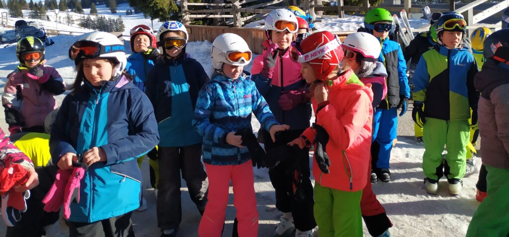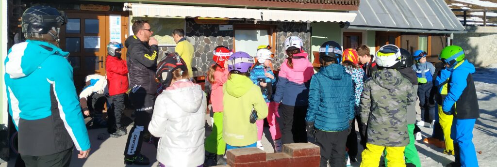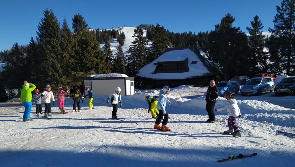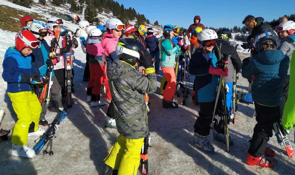 Pridne roke učencev 4. a in 4. d razreda so hitro znosile prtljago do planšarije pri Florjanu, kjer nas je čakalo odlično kosilo in še lepše vreme za prve smučarke zavoje.