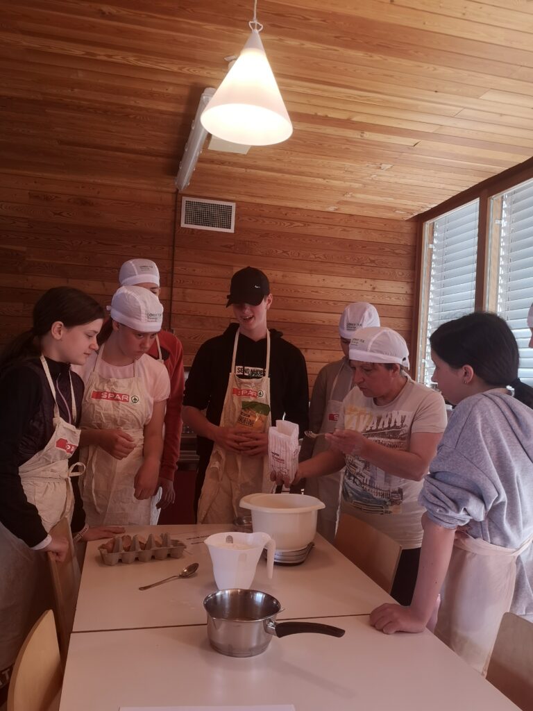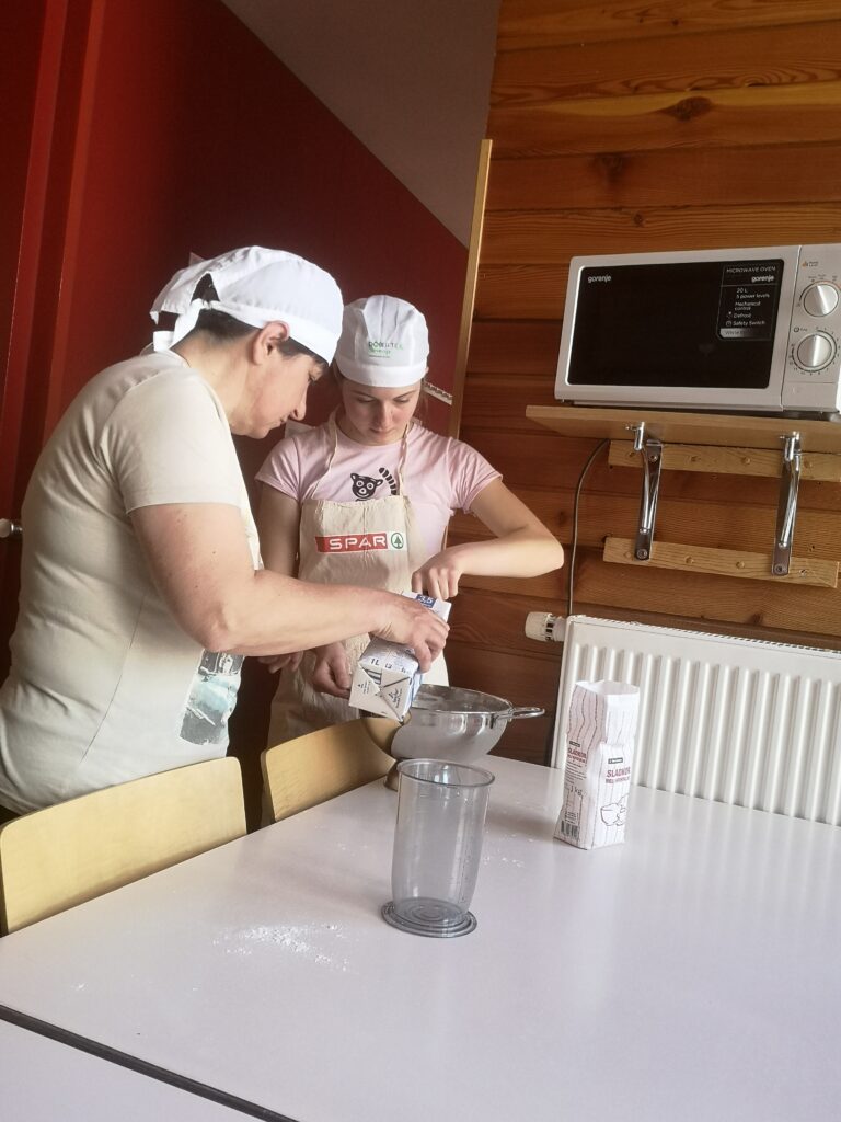 Drugi del dneva smo preživeli pri peki pehtranove potice. Najprej smo si ogledali recept, nato pa smo zamesili testo in pripravili nadev. Tako smo si sami pripravili del večerje. Preizkusili smo se tudi v lokostrelstvu, saj je lahko vsak streljal z lokom in preizkusil svoje ostro oko ter mirno roko. Prvič smo se preizkusili tudi v hoji po vrveh. Nekateri smo bili prav uspešni. Dan poln dogodivščin se je tako zaključil in komaj čakamo, kaj nam prinese jutrišnji dan.