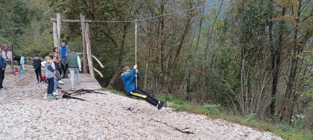 -Na igralih mi je bil všeč zip line. Tekli smo en krog po gozdni poti. Učiteljica nas je spodbujala, da bi tekli dva ali tri, a nam je bil eden dovolj. Nekateri so se pomerili tudi v metanju balinčkov. Zmagale so tri punce: Tinkara, Melisa in Tea. Po poti  smo se pogovarjali in se zabavali. Bilo je lepo.    ANA