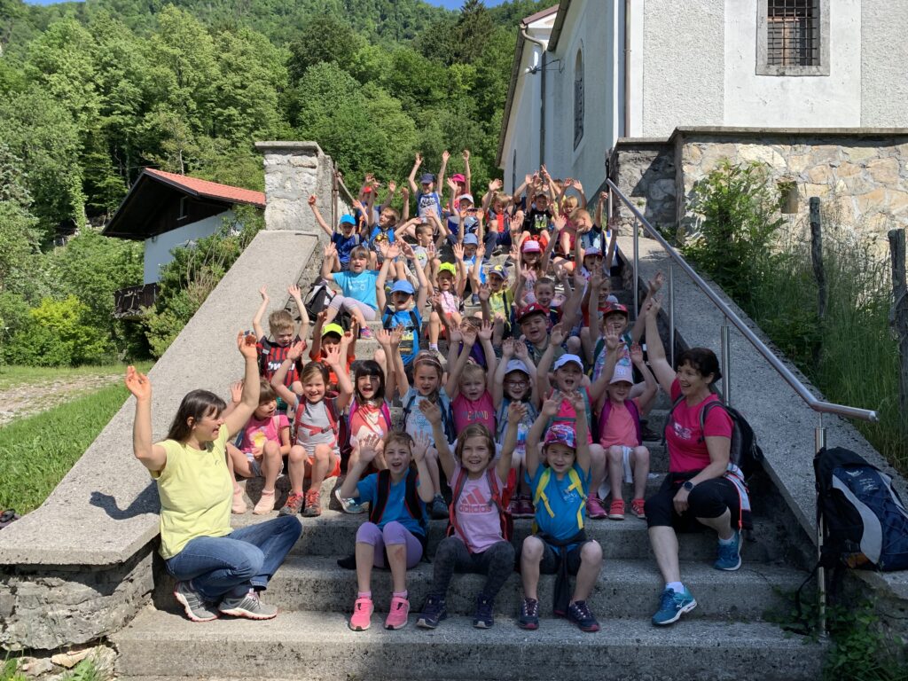 V četrtek, 19. 5. 2022, smo imeli športni dan. Pred šolo smo povedali, kam odhajamo in si zaželeli srečno in lepo pot. Le- ta nas je vodila mimo Loč ter pokošenih travnikov do Palukča, kjer smo si privoščili krajši postanek s požirkom pijače. Sledil je vzpon proti cerkvici svetega Petra nad Zatolminom. Na poti smo prisluhnili ptičjemu petju ter pripovedki, ki pripoveduje o Medvedovi glavi v koritih Zadlaščice.