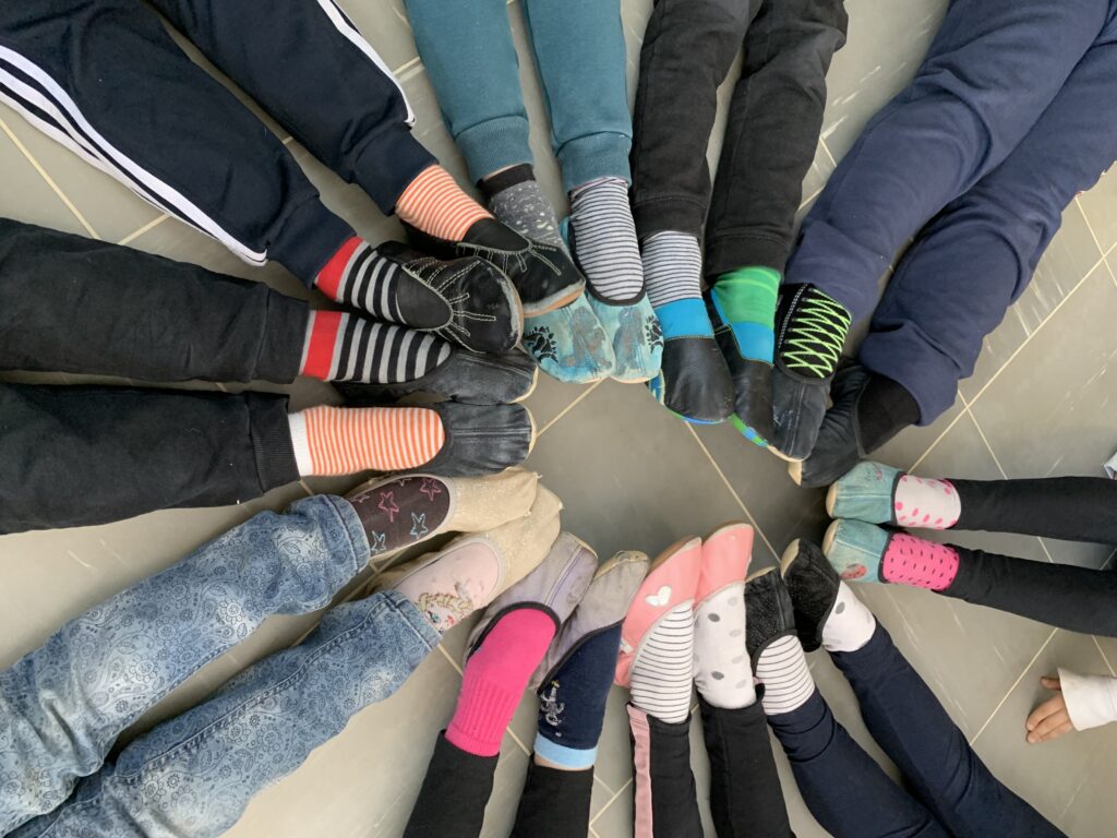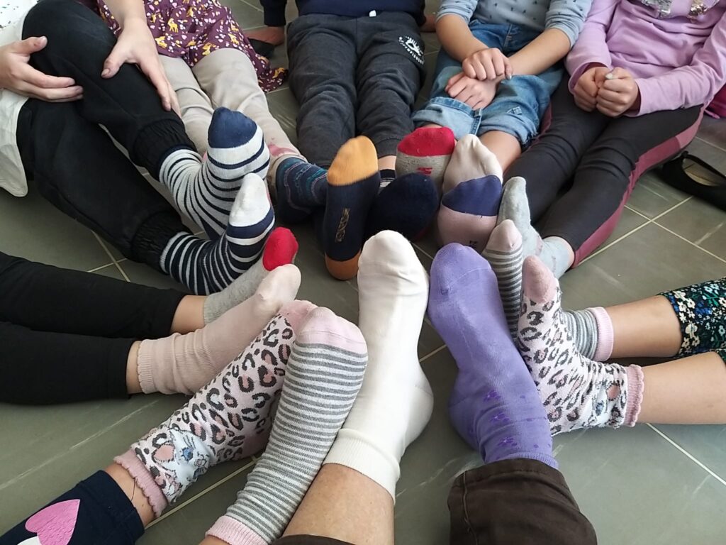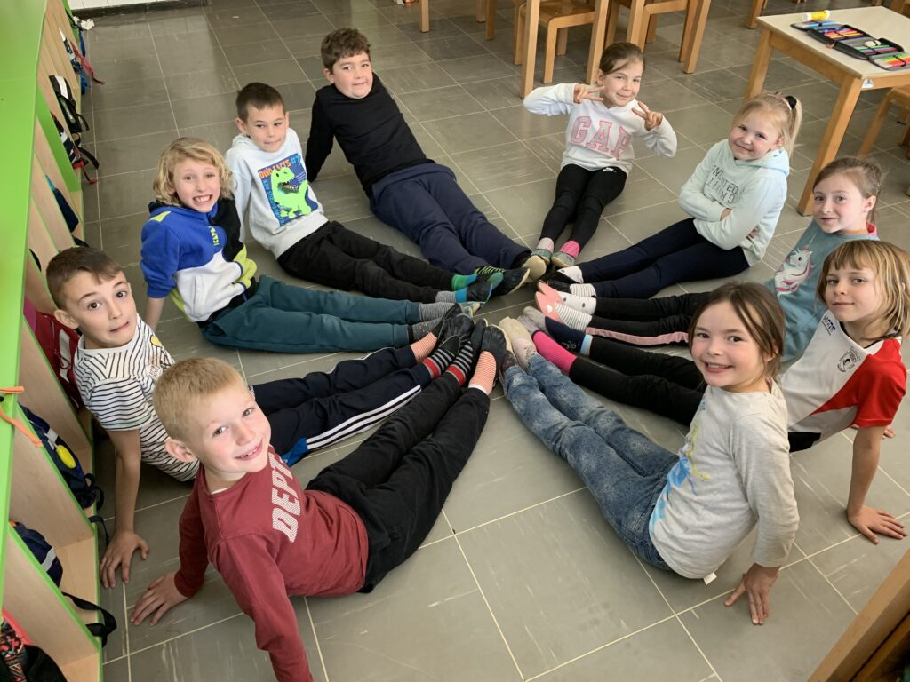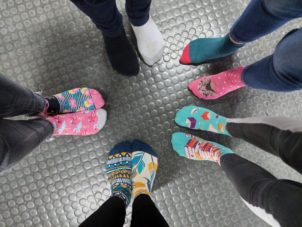 Na naši Podružnični šoli za izobraževanje in usposabljanje otrok s posebnimi potrebami imamo tudi otroke z Downovim sindromom. Učence smo spodbudili, da v znak podpore osebam z Downovim sindromom obujejo dve različni pisani nogavici, ki sta razpoznavni znak tega dne.
