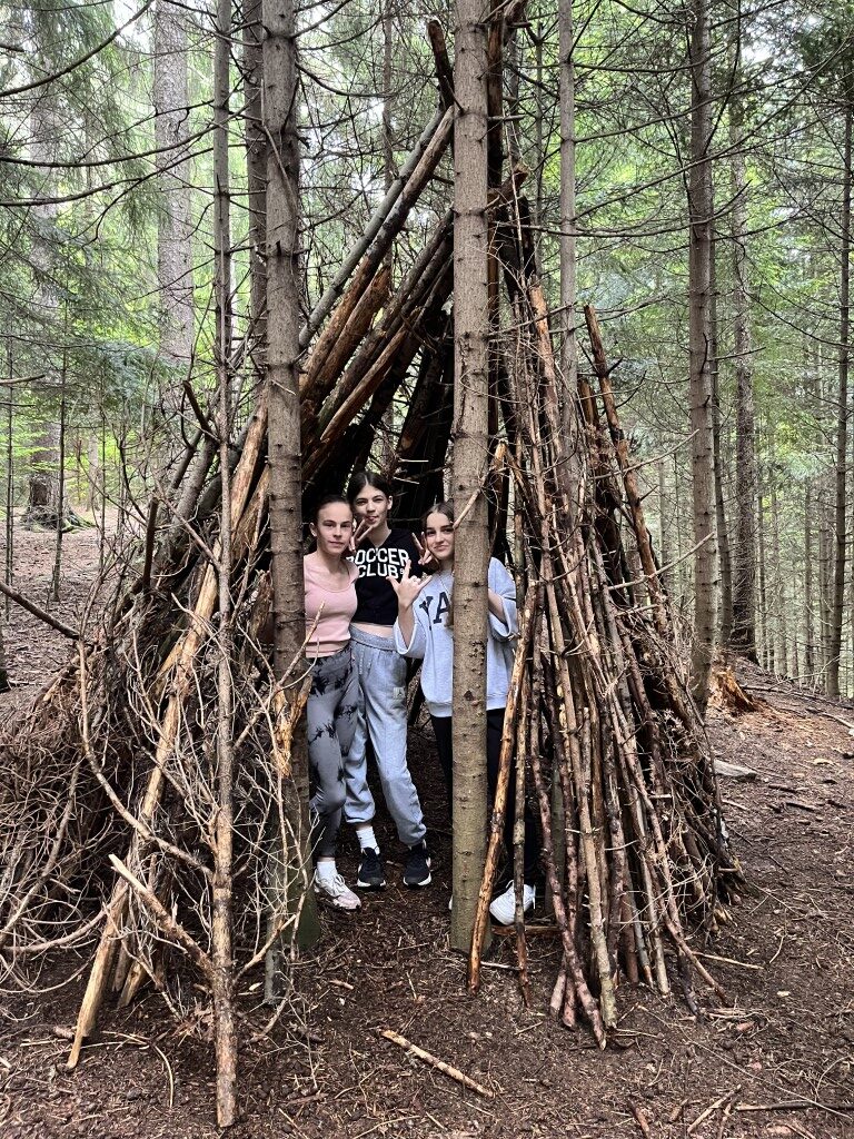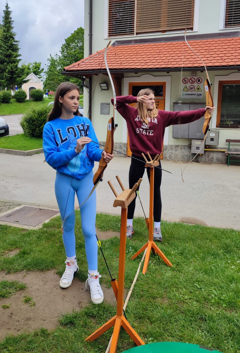 En velik hvala vsem zaposlenim tukaj, ki so se ves teden trudili z nami: Nadi, ki nas je spoprijateljila s pohorskimi gozdovi, Danici, s katero smo lovili potočne živalce in vohali in okušali zdravilne rastline, Tomažu, Gregi in Snežki, s katerimi smo pogumno splezali na vrh plezalne stene, streljali z lokom, igrali odbojko, nogomet, košarko…kuharicam za izjemne zajtrke, malice, kosila in večerje, nad katerimi smo bili vsi navdušeni in nenazadnje Gregorju, ki vse to tako lepo vodi.