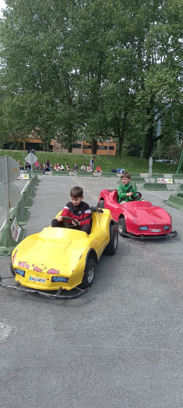 Učenci so najprej na teoretičnem delu ponovili prometne znake in predpise, nato pa se preizkusili v samostojni vožnji z avtomobilčki na pripravljenem prometnem poligonu. Avtomobilčki na bencinski pogon so bili prava atrakcija, saj so dobra simulacija pravega vozila in učencem predstavijo zorni kot voznika. Imajo varnostni pas, zavore in pedale za plin.