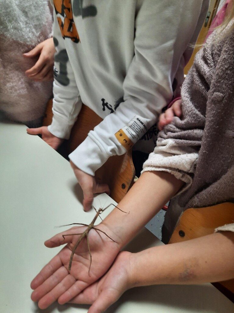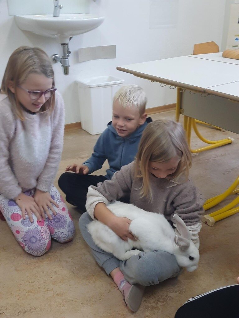 Učitelji so nas presenetili, da smo si lahko ogledali risanko »Vrvež v moji glavi« in tako odkrivali tudi druga čustva, ki so prisotna pri nas, se pogovarjali tudi o negativnih čustvih in kako odreagirati, ko nas preplavijo. Najlepše presenečenje pa je bilo, ko smo v četrtek dobili prav poseben obisk in sicer dva zajčka in paličnjake. Vsi so lahko preživeli cel dan z nami pri pouku, mi pa smo poskrbeli, da so ob nas dobro počutili. Ravno tako, pa smo odšli na obisk k še enemu ljubljenčku naših sošolk in sicer k oslici Eli. Tudi ta nas je toplo sprejela, mi pa smo ji nekaj časa delali družbo in jo malo nahranili.