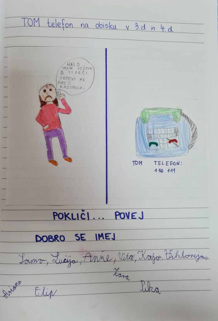 Tudi naša šola se je pridružila akciji “Tom potuje, otroke obiskuje”. Pričetek akcije je bil 17.5. 2022 na mednarodni dan otroških telefonov. V tednu od 4. 10. 2022 do 11. 10. 2022 smo na OŠ Franceta Bevka, PŠ Antona Majnik in PŠ Kamno gostili TOM nahrbtnik. Učencem smo predstavili osnovne informacije, komu je namen in kako deluje TOM telefon. Učenci so razmišljali o pomenu slogana: Odgovor je pogovor. Zaključek akcije bo 20. 11. 2022 na rojstni dan TOM telefona®.
