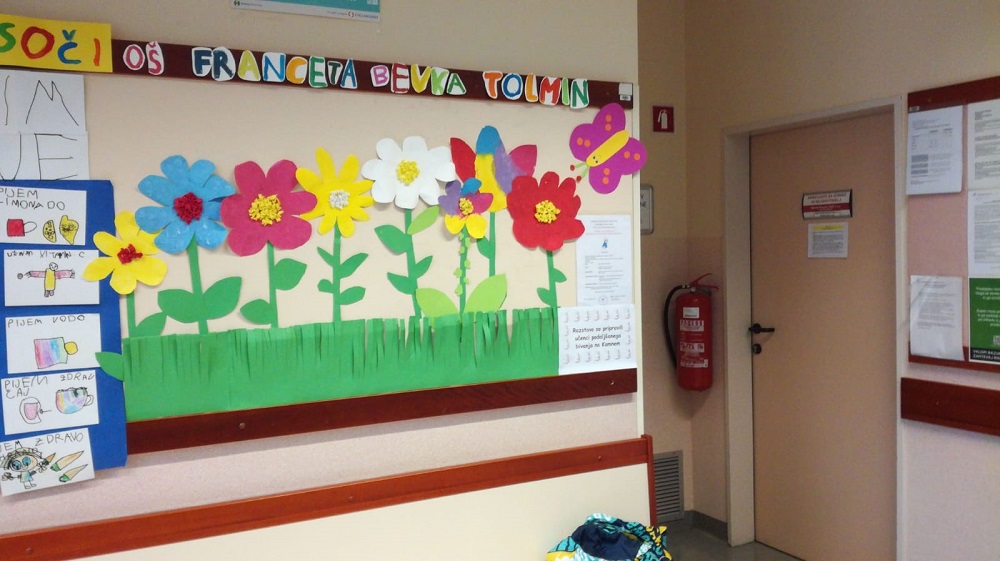 Pust je mimo. Učenci podaljšanega bivanja na Kamnem so se odločili, da se bodo potrudili, da bodo na razstavi v zdravstvenem domu pričarali pomlad. Na risalne liste so narisali velike rože, jih izrezali ter s tempera barvami pobarvali. Zdaj pomladne rože krasijo otroško čakalnico v zdravstvenem domu Tolmin.