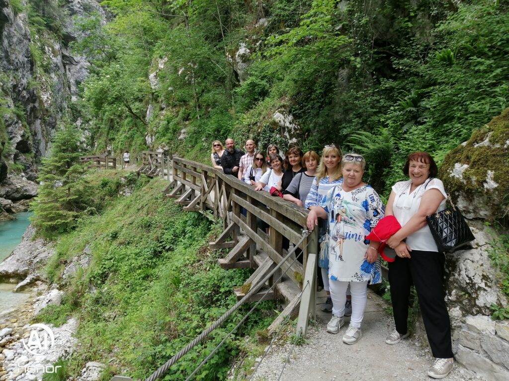 Po analizi sem udeležencem predstavila našo šolo s podružnicami, cilje, ki jih zasledujemo, našo vizijo in dejavnosti, s katerimi smo vpeti med vrstnike in okolje. Pospremila sem jih v Tolminska korita, na kosilu pa se nam je pridružila tudi naša ravnateljica Petra Vitez Costantini. Konstruktiven pogovor je bil poln pohval in pozitivnih misli. Z lepimi občutki smo se razšli, zadovoljni oboji, s spodbudno popotnico za šolo in pilotsko nalogo.