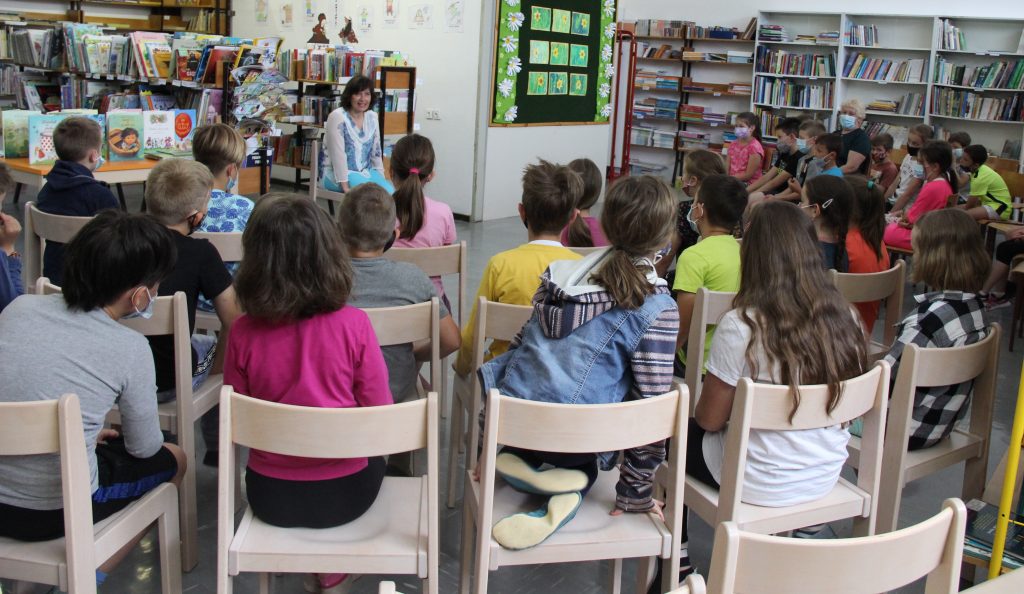 Koronskemu času navkljub nam je v torek, 15. 6. 2021, uspelo izpeljati zaključni bralni dogodek. V sodelovanju s šolsko knjižničarko Alenko Kragelj je naše mlade bralce obiskala otroška pisateljica Anja Štefan. Za začetek jim je na kratko orisala postopek nastajanja knjige, jih v nadaljevanju navdušila z zastavljanjem ugank in petjem pesmic ter doživetim pripovedovanjem ljudskih pravljic. Ob zaključku dogodka je učencem podelila knjige s svojim podpisom.