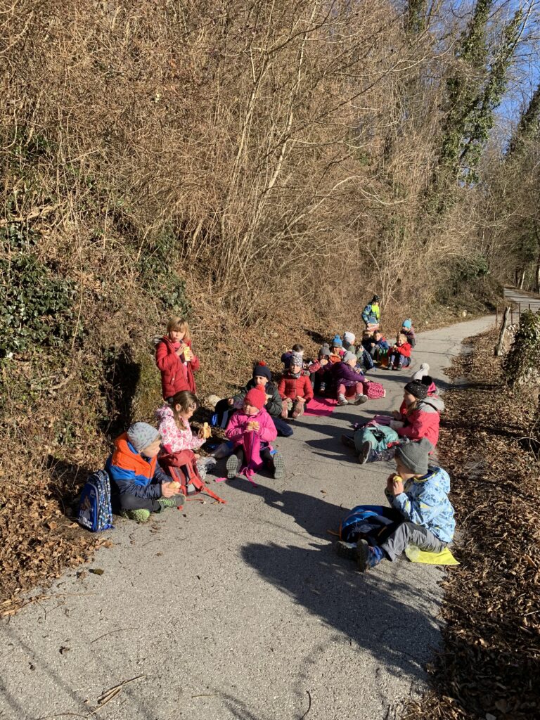 Prvošolci smo se danes, 3. februarja, podali na zimski pohod. S kapami na glavi in rokavicami na rokah ter toplo bundo smo pogumno zakorakali na šolsko dvorišče in se v spremstvu učiteljic podali proti Zatolminu. Sonce je sprva še sramežljivo kukalo skozi oblake. Kmalu pa je posijalo in nas prav prijetno grelo. Med potjo smo spoznavali tudi kulturne znamenitosti. Seveda pa nam je najbolj teknila malica. Zvončki so nas opomnili na to, da v deželo prihaja pomlad.